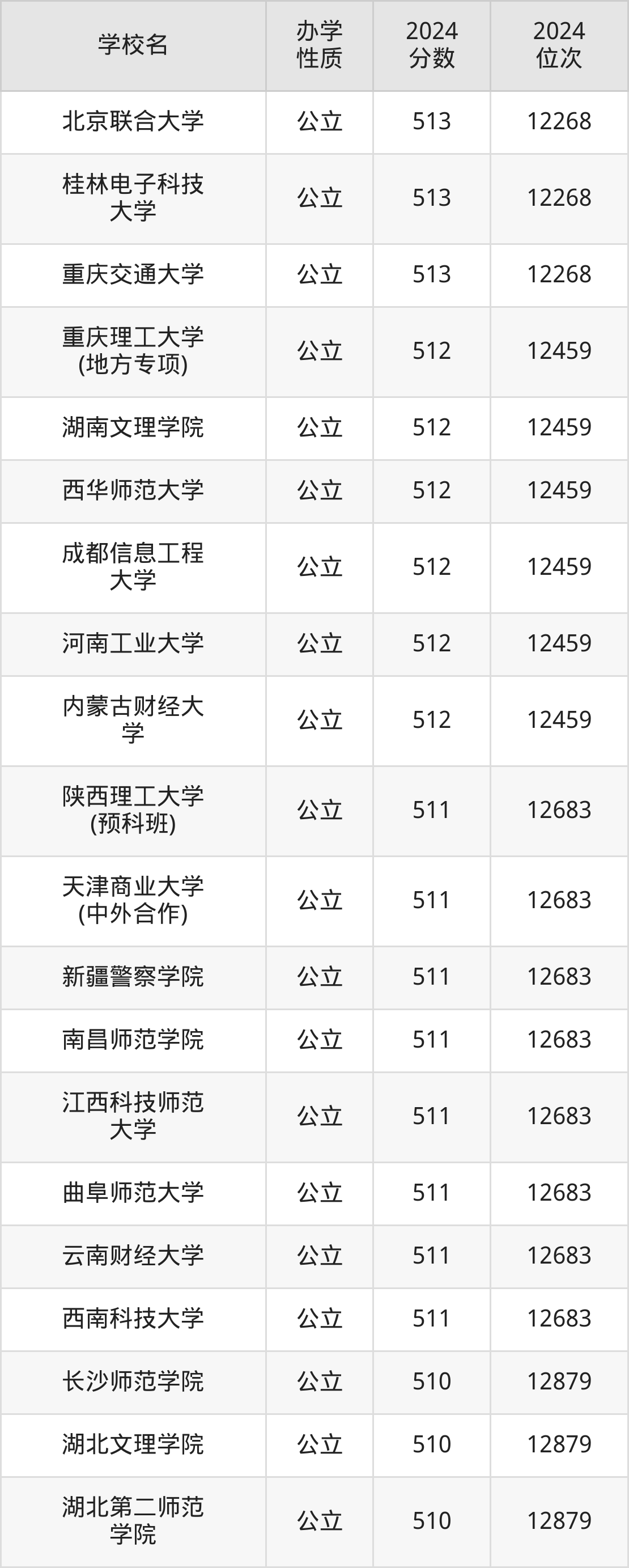 | 重庆理工大学 (地方专项) | 512 | 12459 |