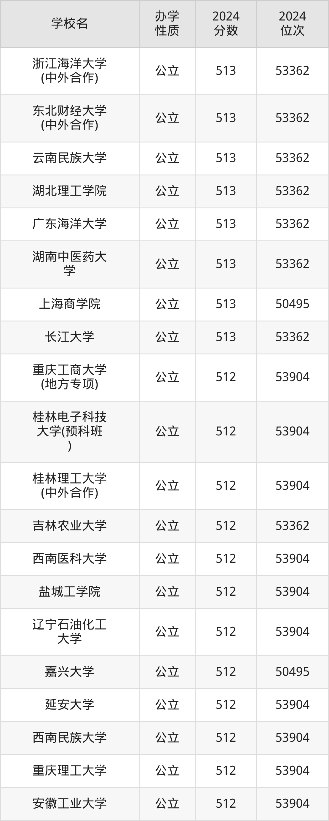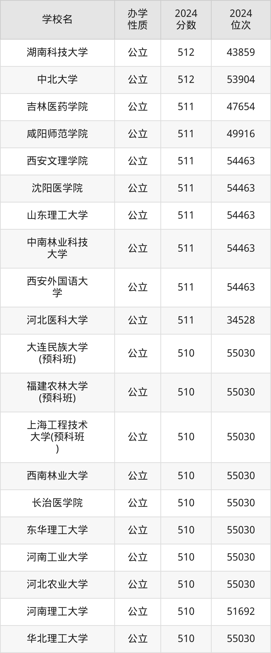 | 学校名 | 2024 分数 | 2024 位次 |