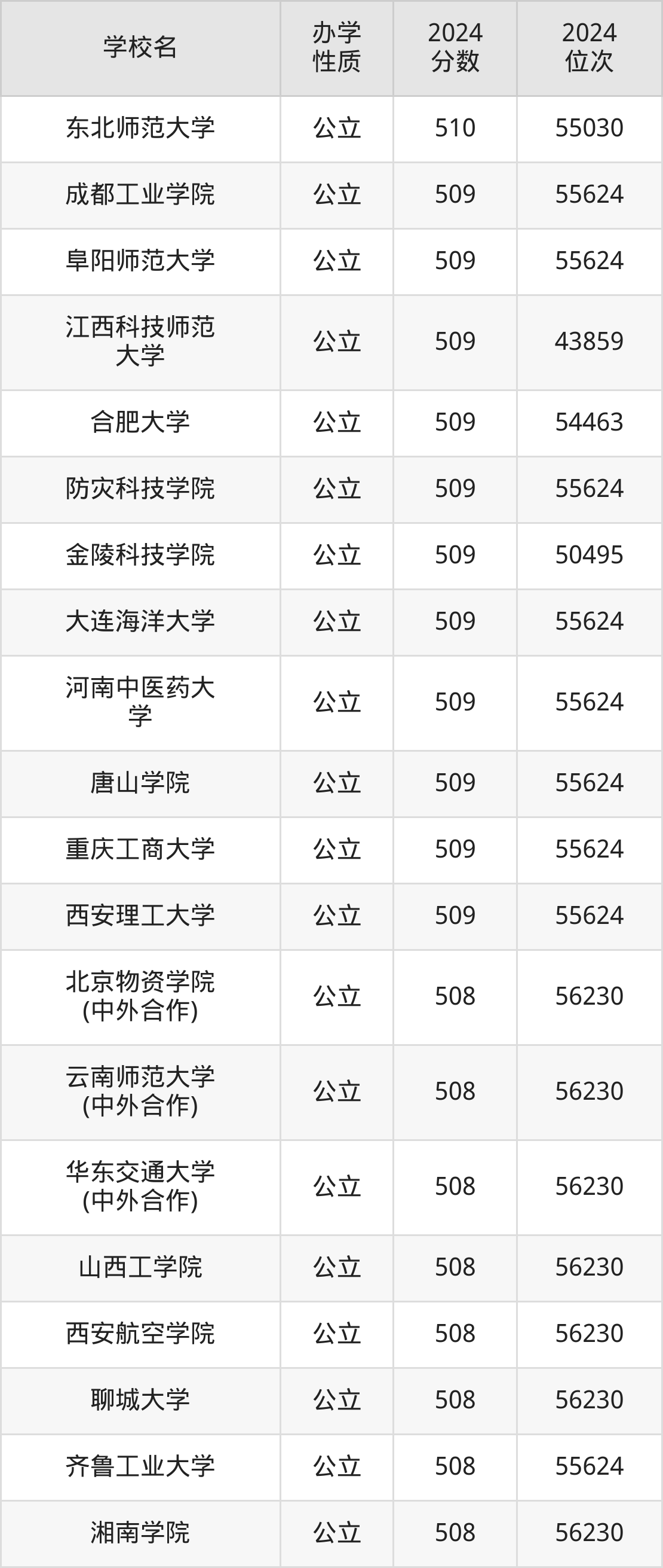 | 华东交通大学 (中外合作) | 508 | 56230 |