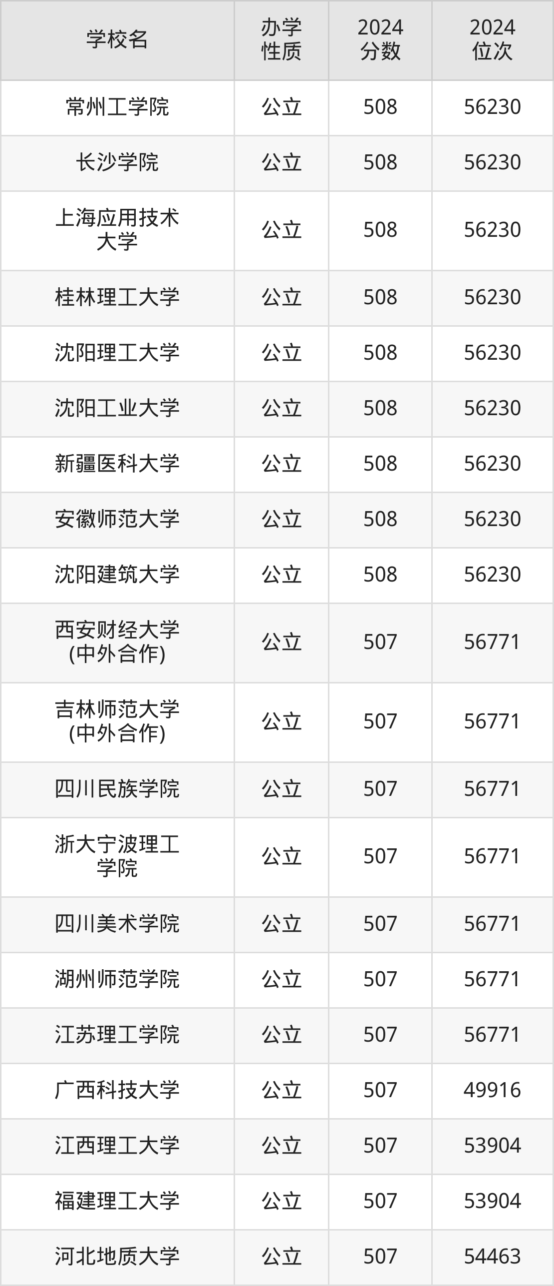| 西安财经大学 (中外合作) | 507 | 56771 |
