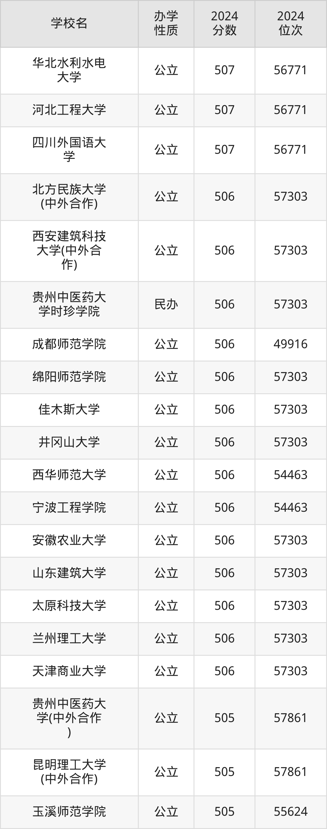 | 北方民族大学 (中外合作) | 506 | 57303 |
