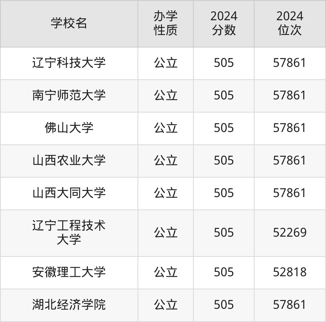 | 山西大同大学 | 505 | 57861 |