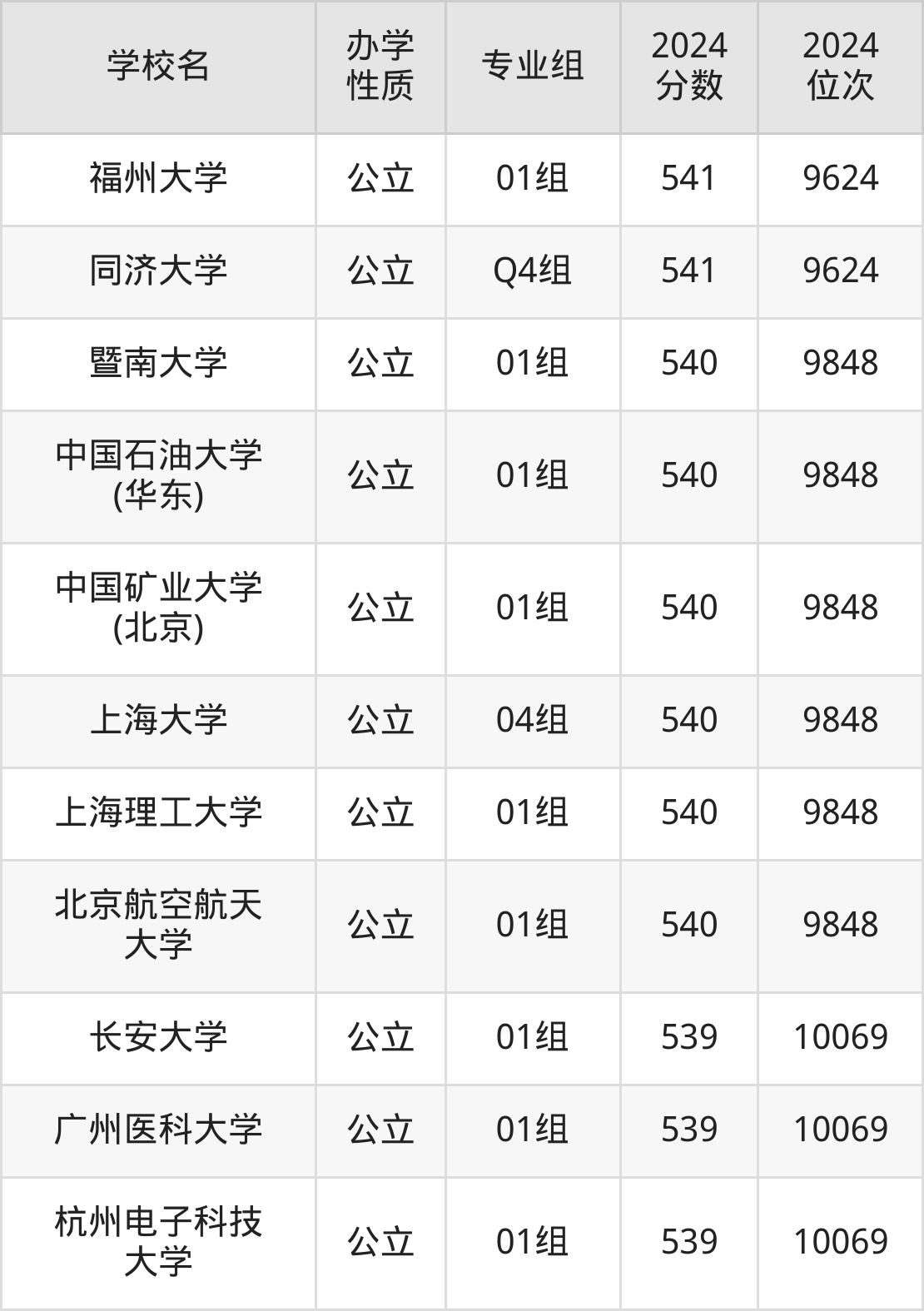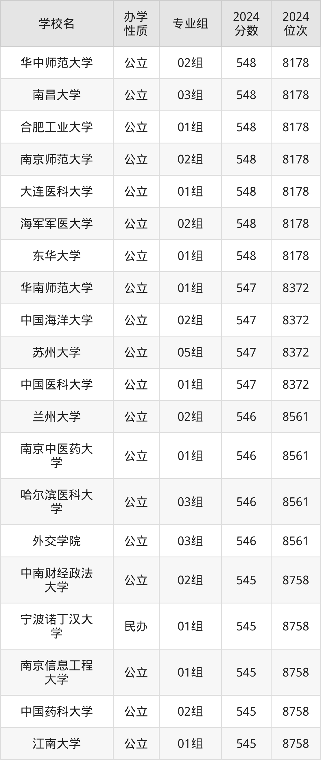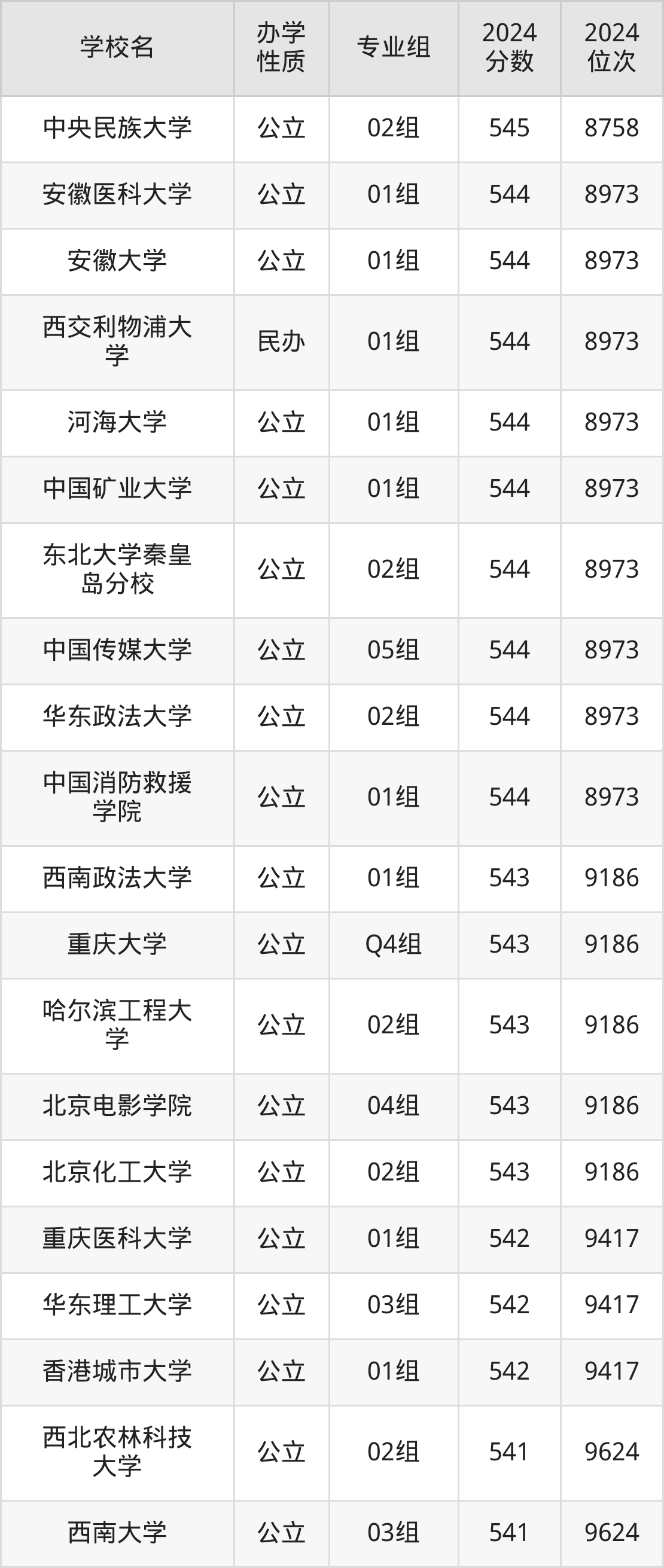 | 学校名 | 专业组 | 2024 分数 | 2024 位次 |