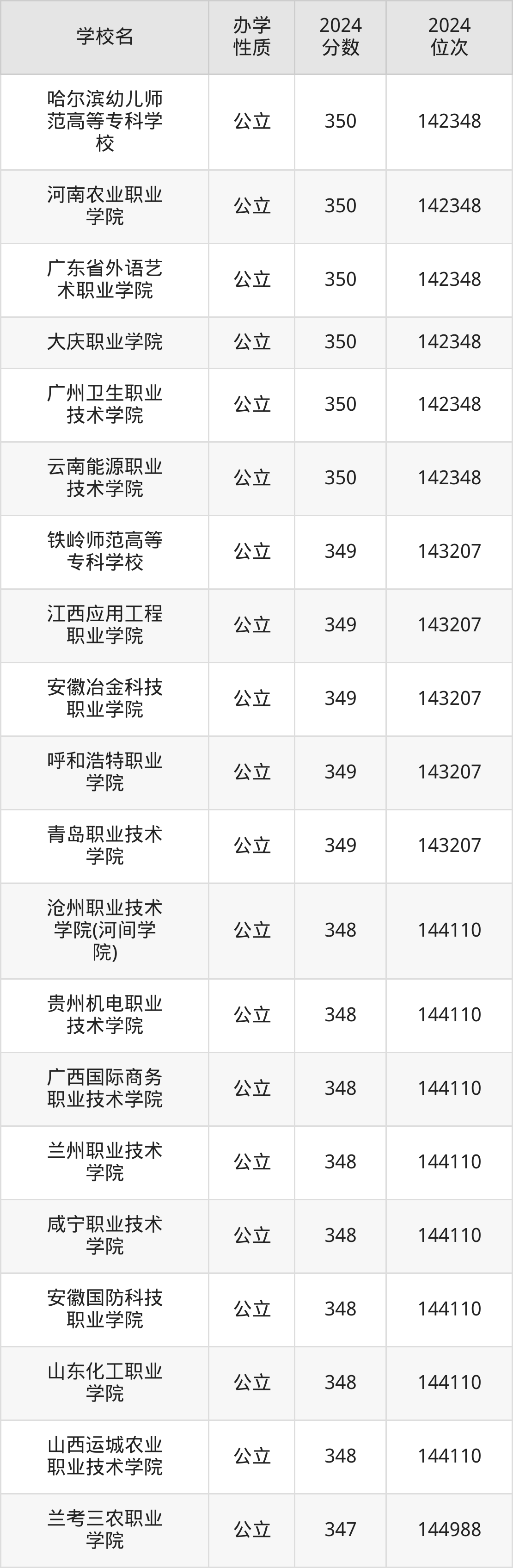 | 江西应用工程 职业学院 | 349 | 143207 |