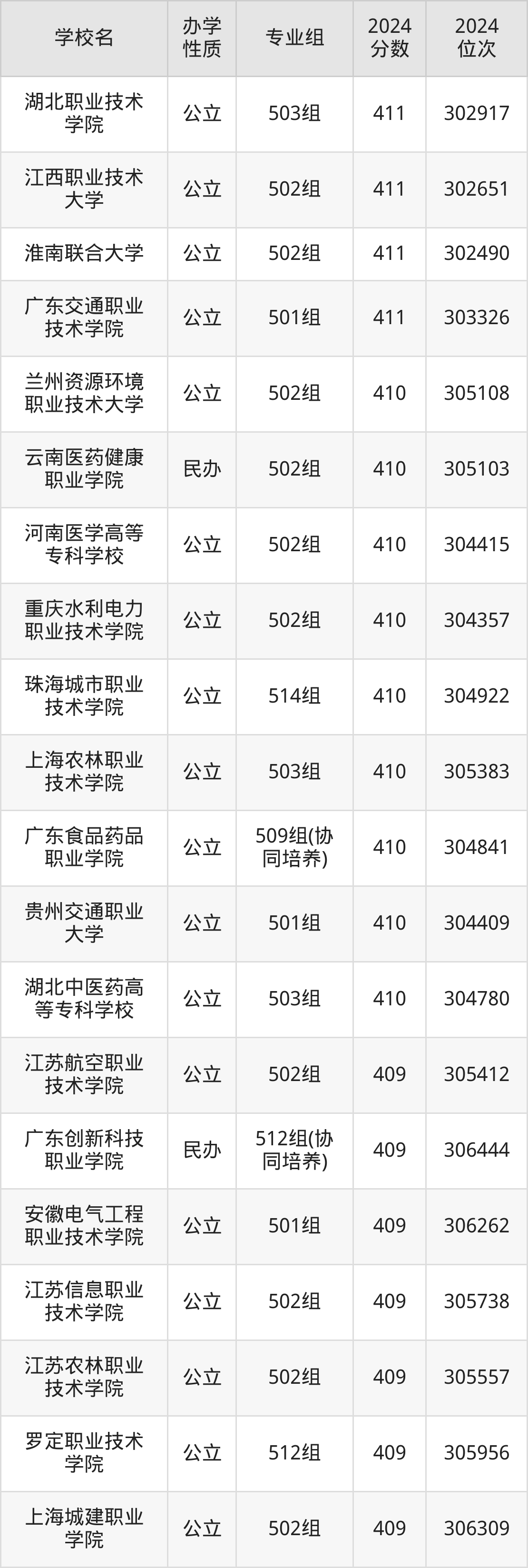 广东411分左右的考生可以上上海民航职业技术学院、广西卫生职业技术学院、东莞职业技术学院等院校,刚好在411分的院校有广东南方职业学院、广东理工职业学院。