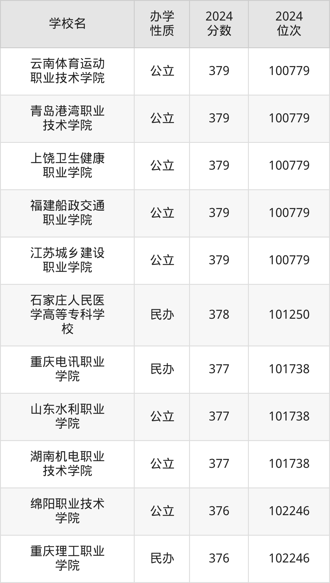 | 山东水利职业 学院 | 377 | 101738 |