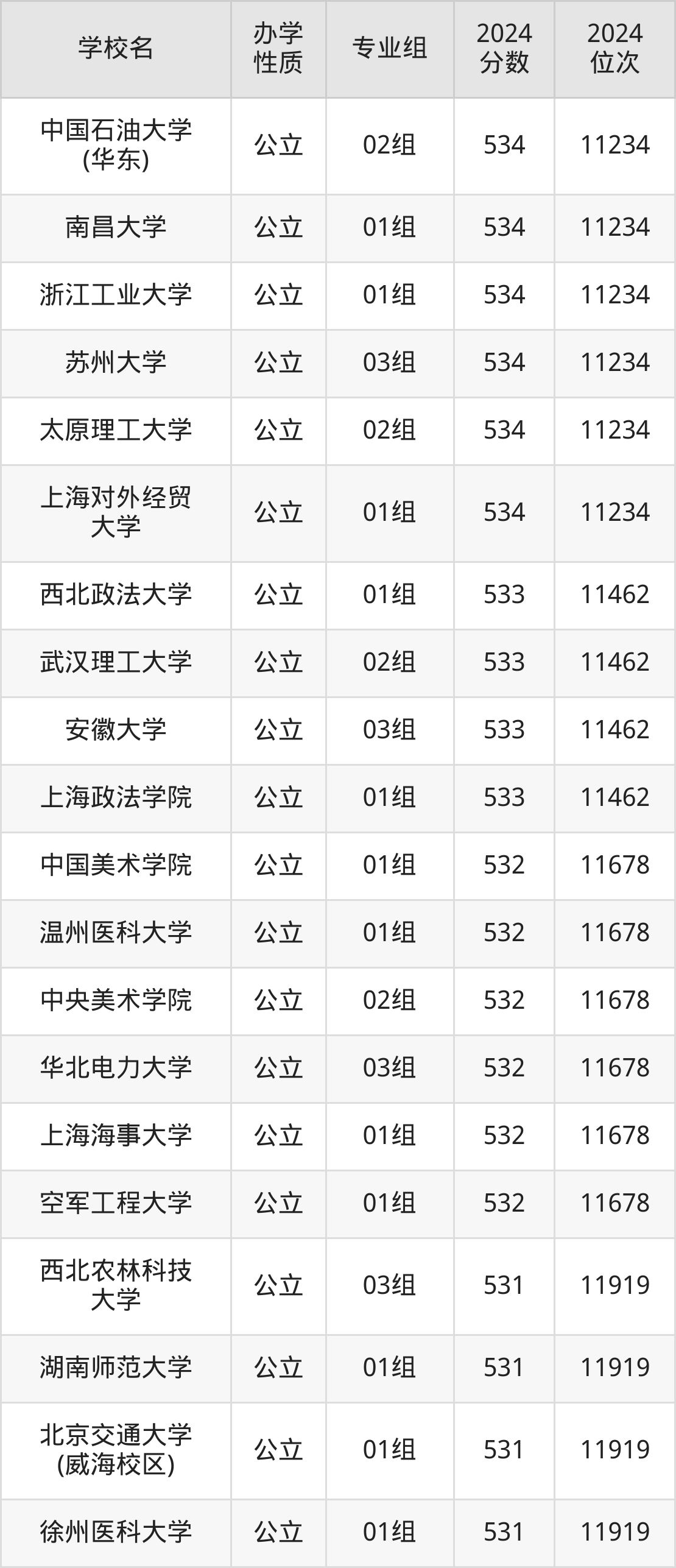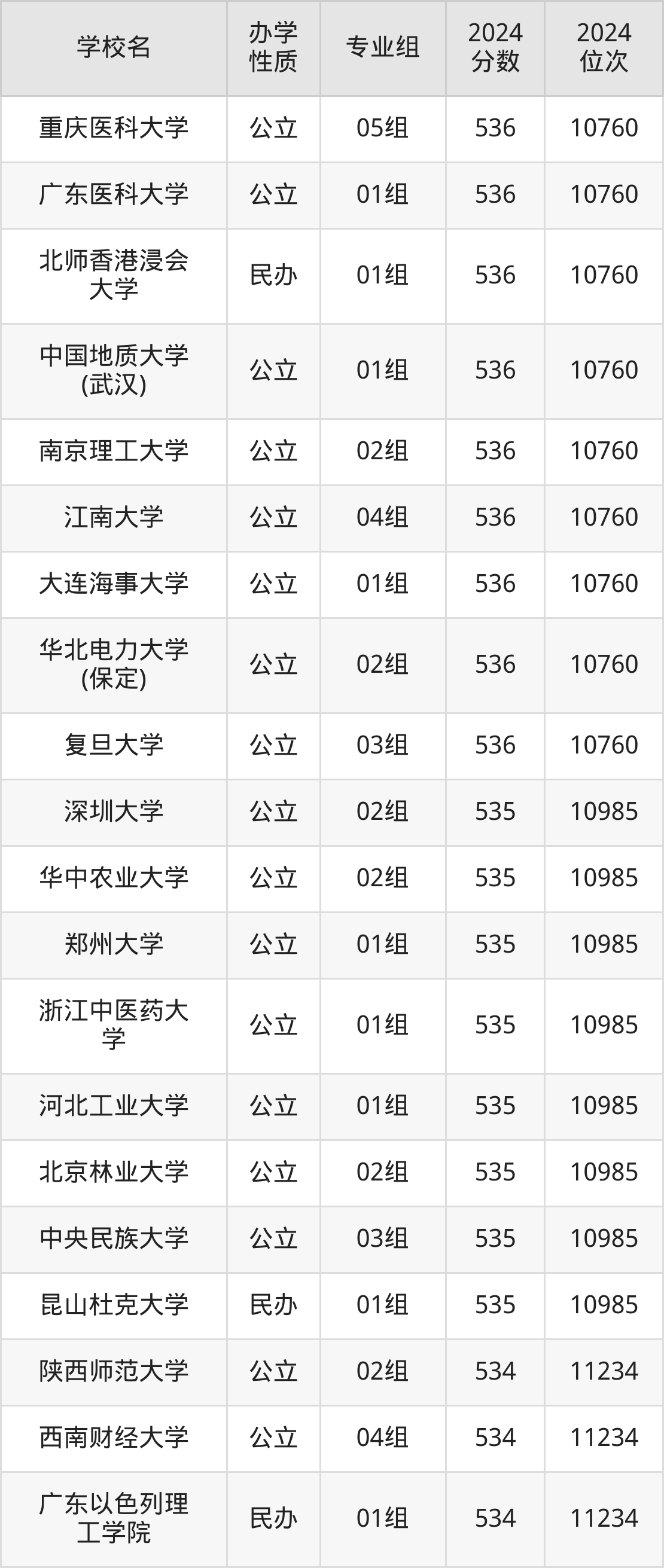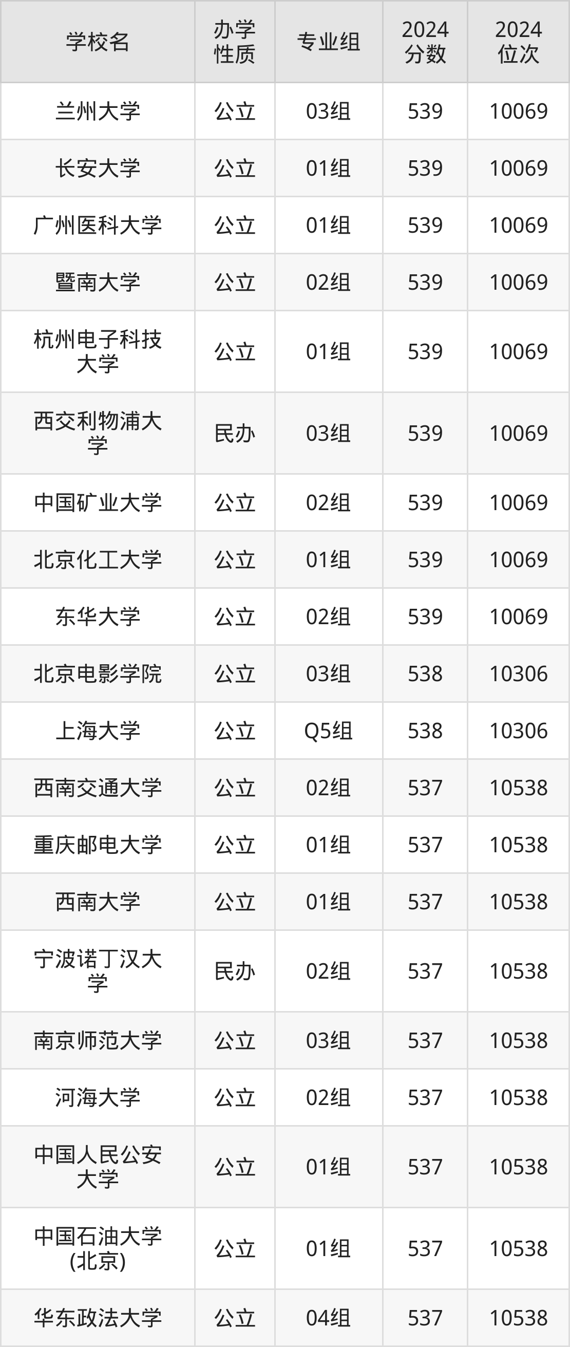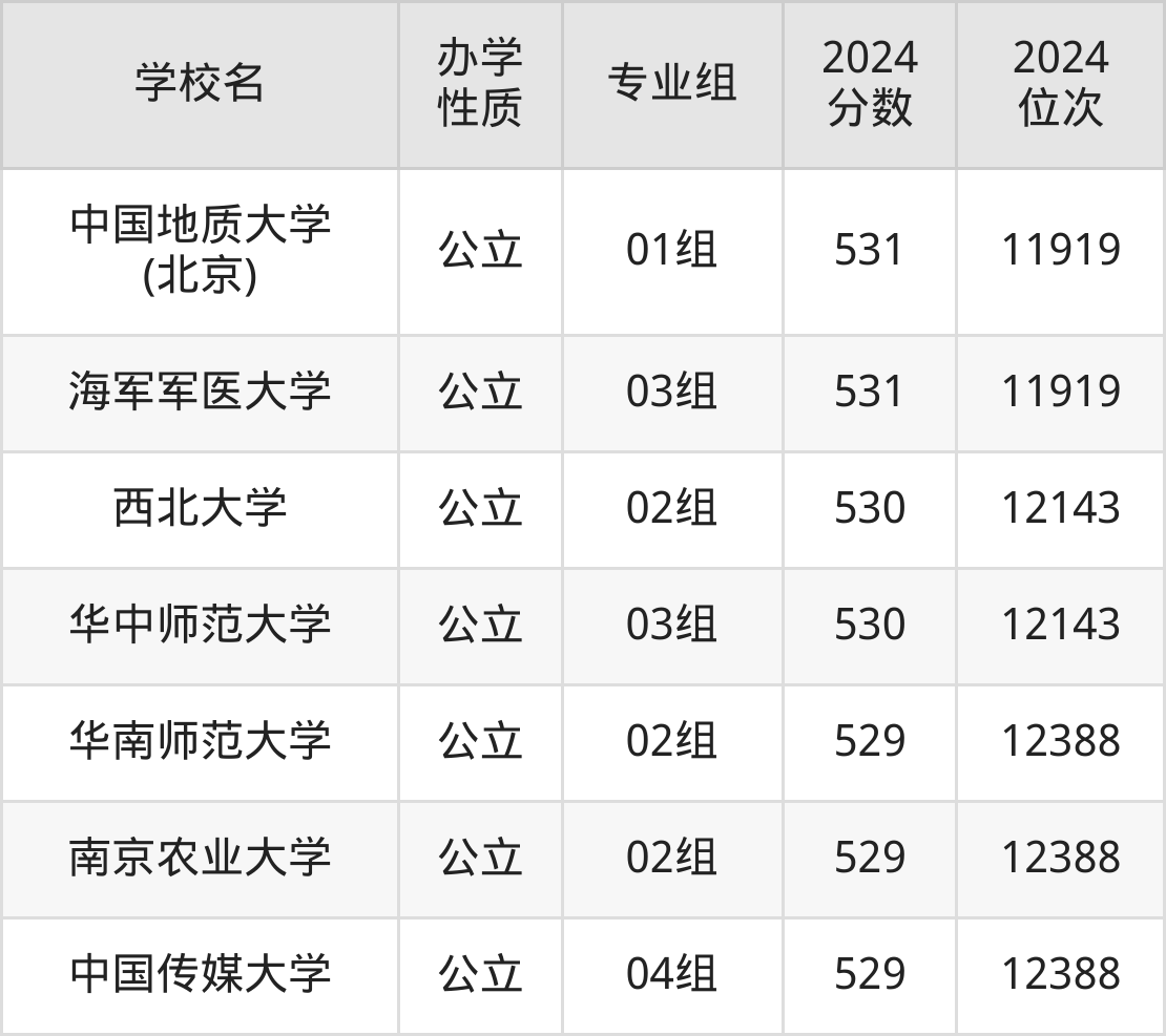 | 学校名 | 专业组 | 2024 分数 | 2024 位次 |