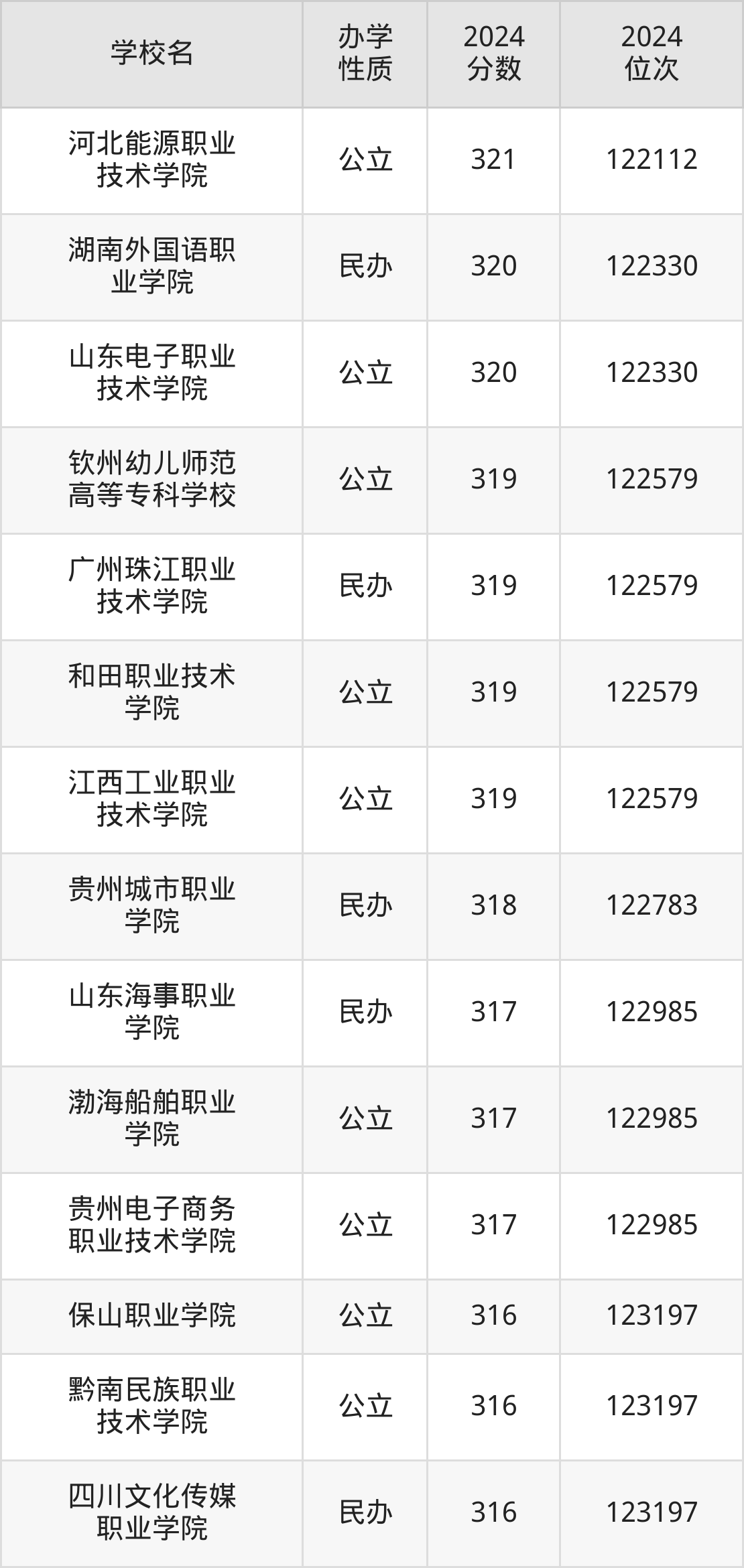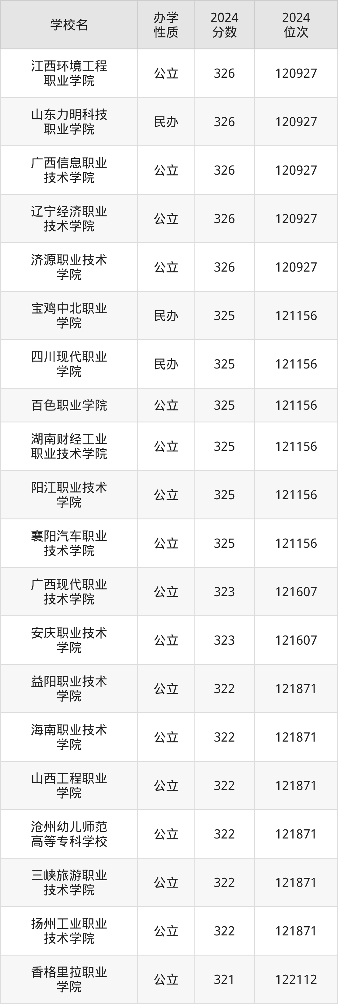 | 山西工程职业 学院 | 322 | 121871 |