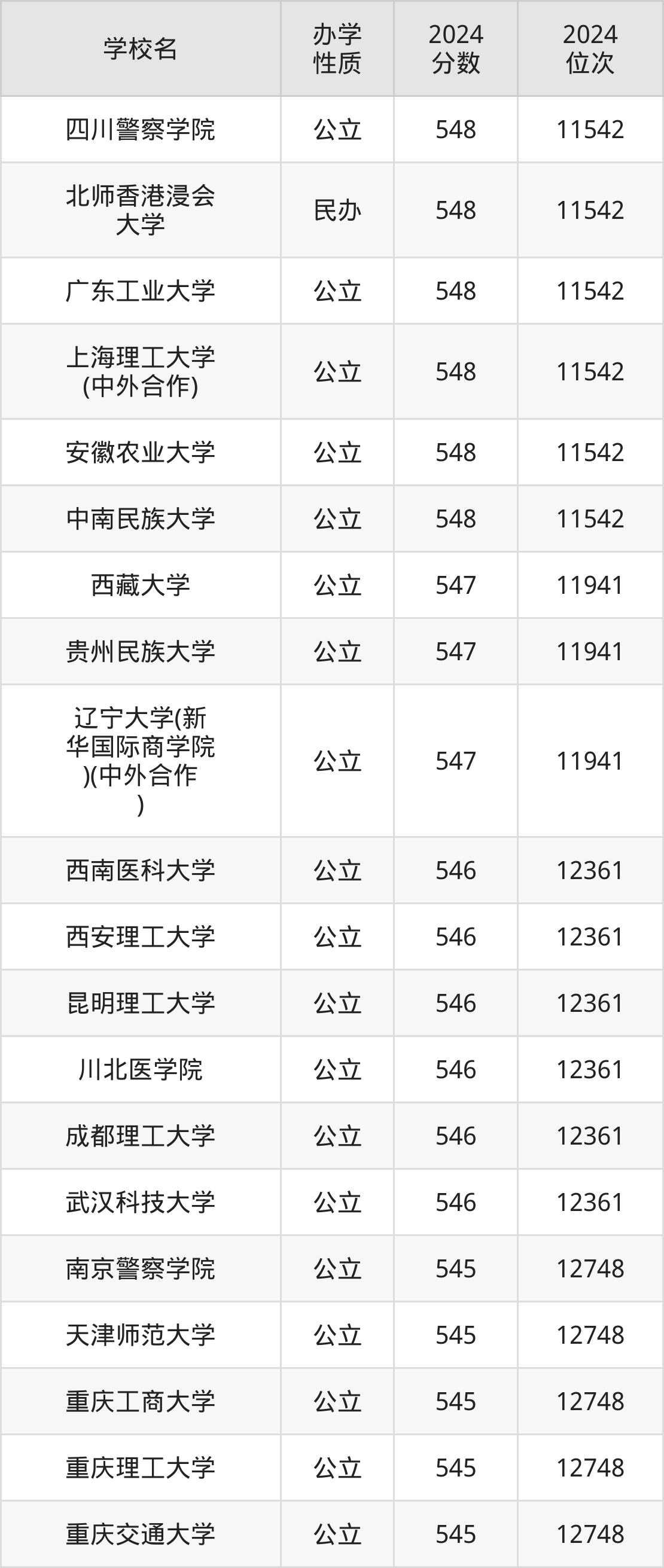 | 辽宁大学(新 华国际商学院 )(中外合作 ) | 547 | 11941 |