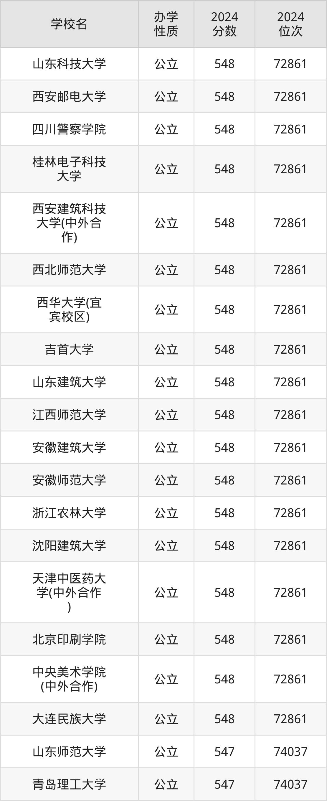 | 山东建筑大学 | 548 | 72861 |