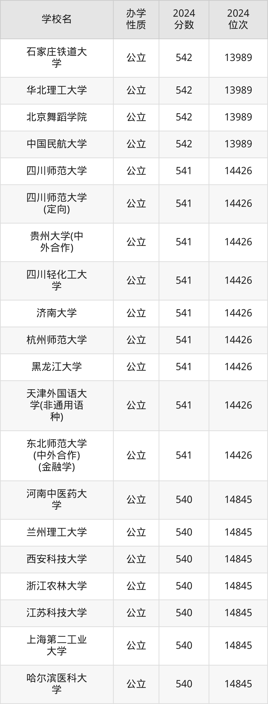 | 四川师范大学 (中外合作) | 539 | 83354 |