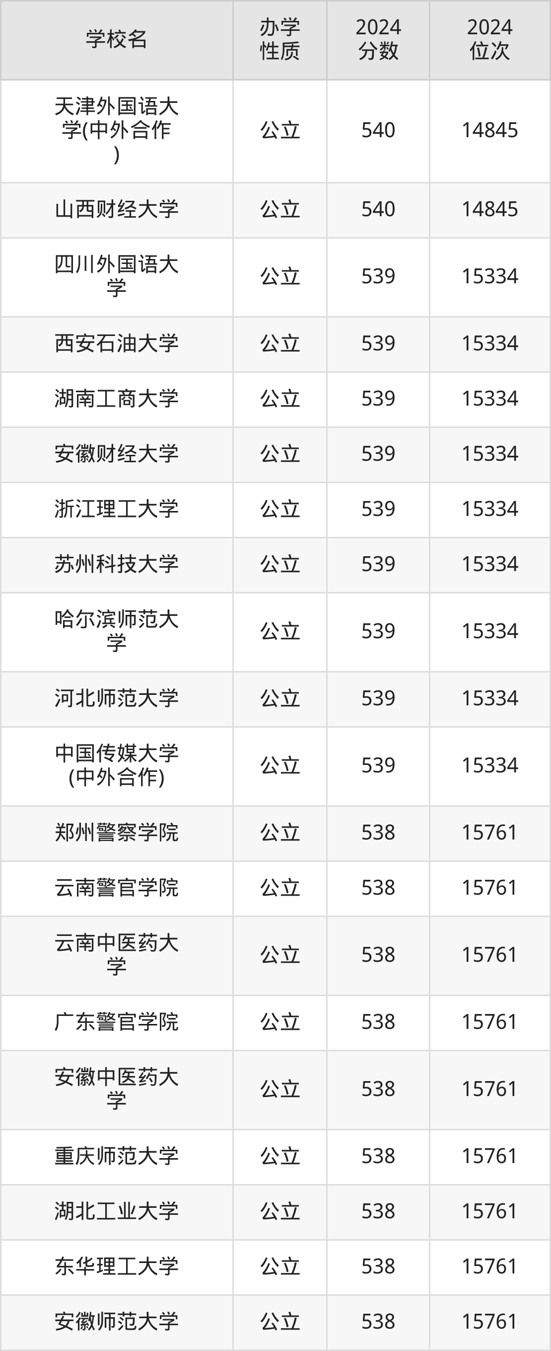 | 天津外国语大 学(中外合作 ) | 540 | 14845 |
