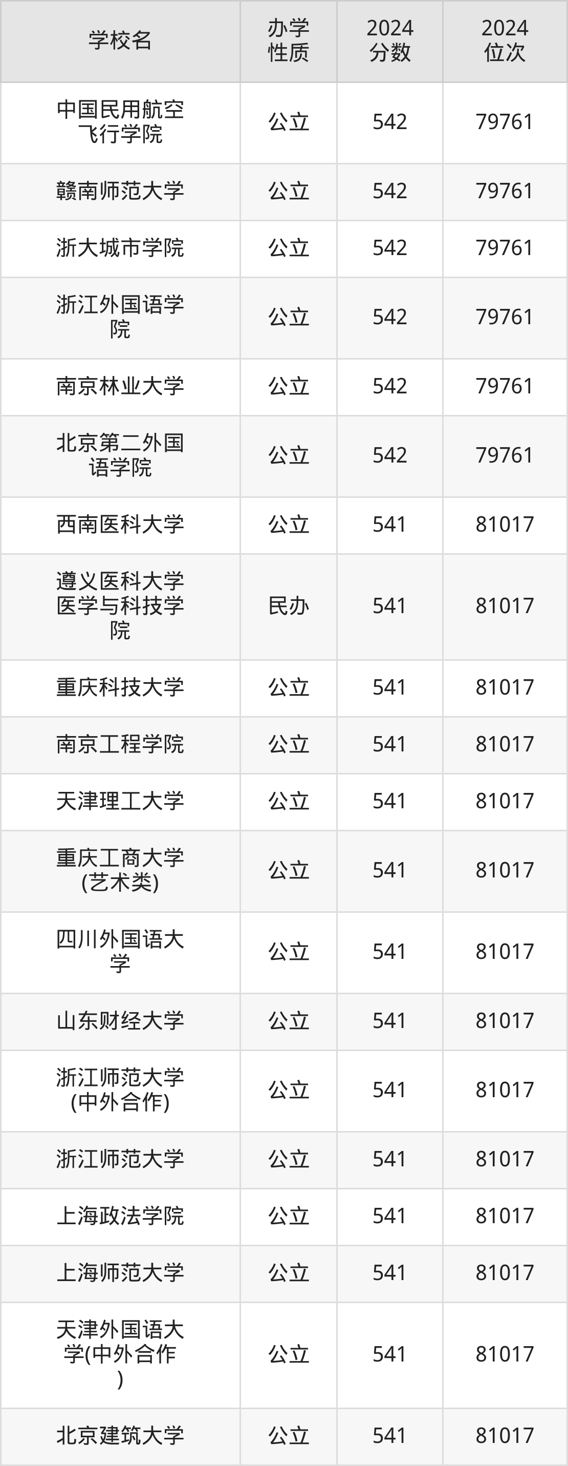 | 天津外国语大 学(中外合作 ) | 541 | 81017 |