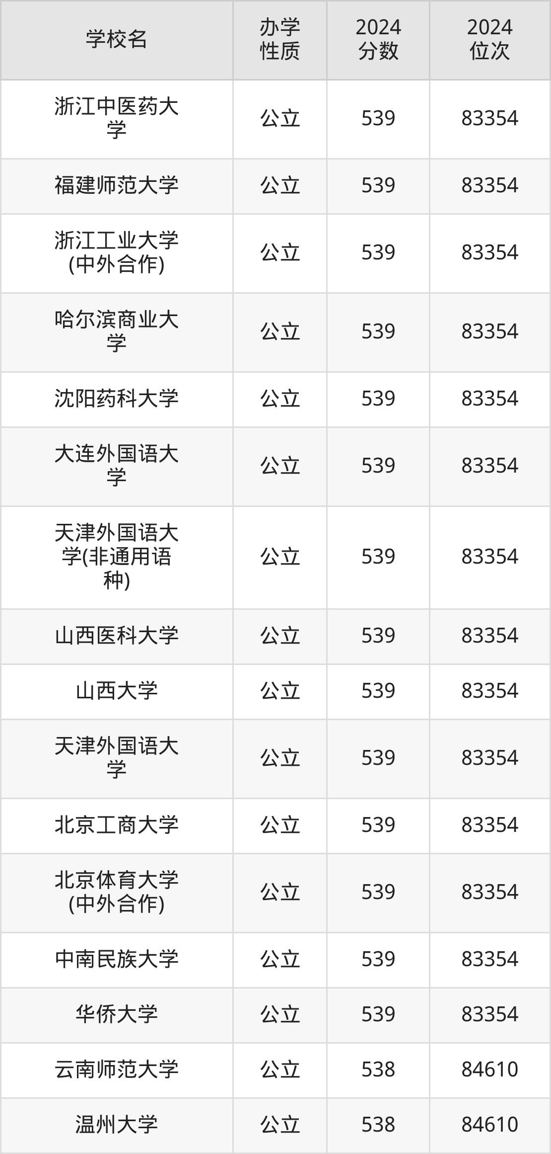 | 浙江工业大学 (中外合作) | 539 | 83354 |