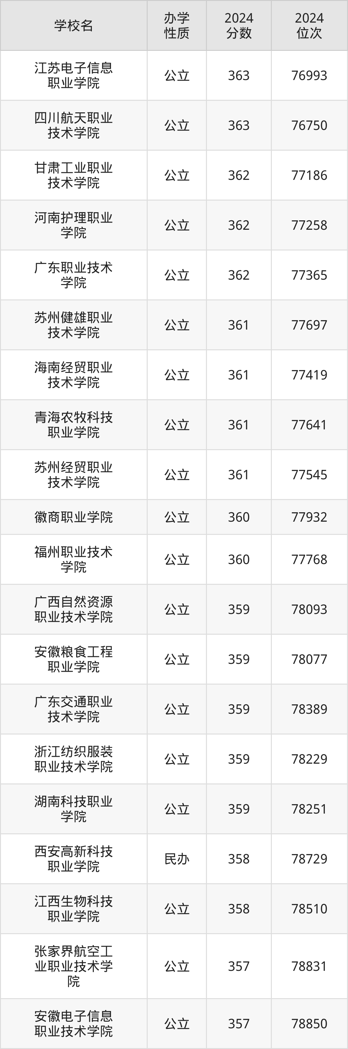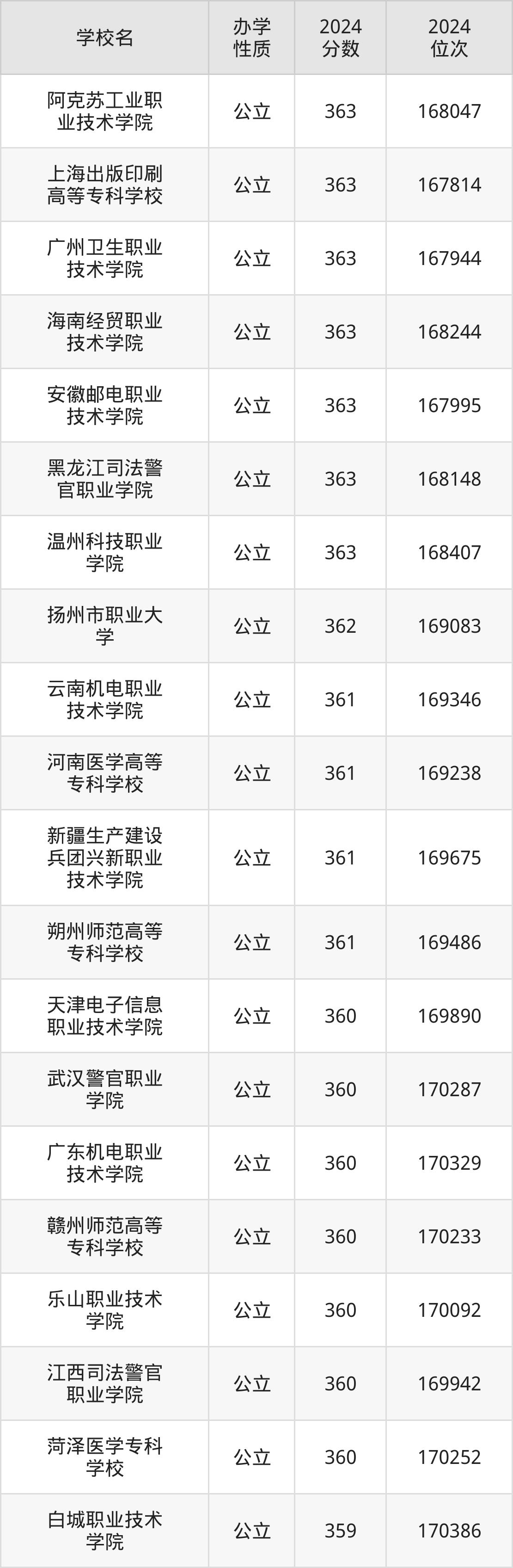 | 江西司法警官 职业学院 | 360 | 169942 |