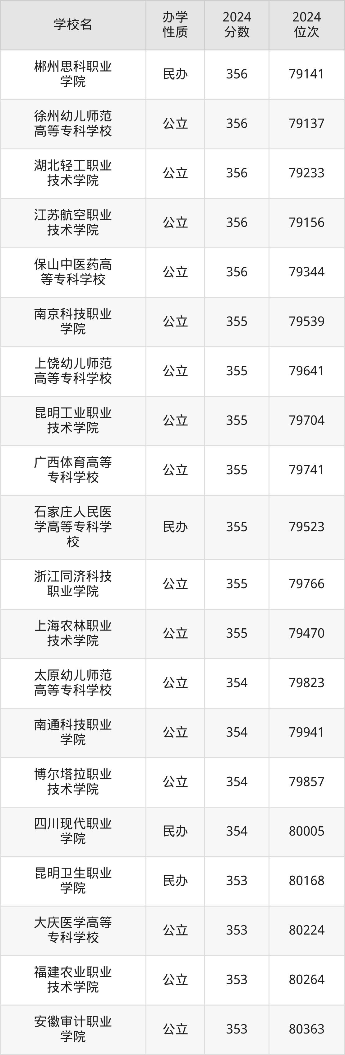 | 昆明卫生职业 学院 | 353 | 80168 |