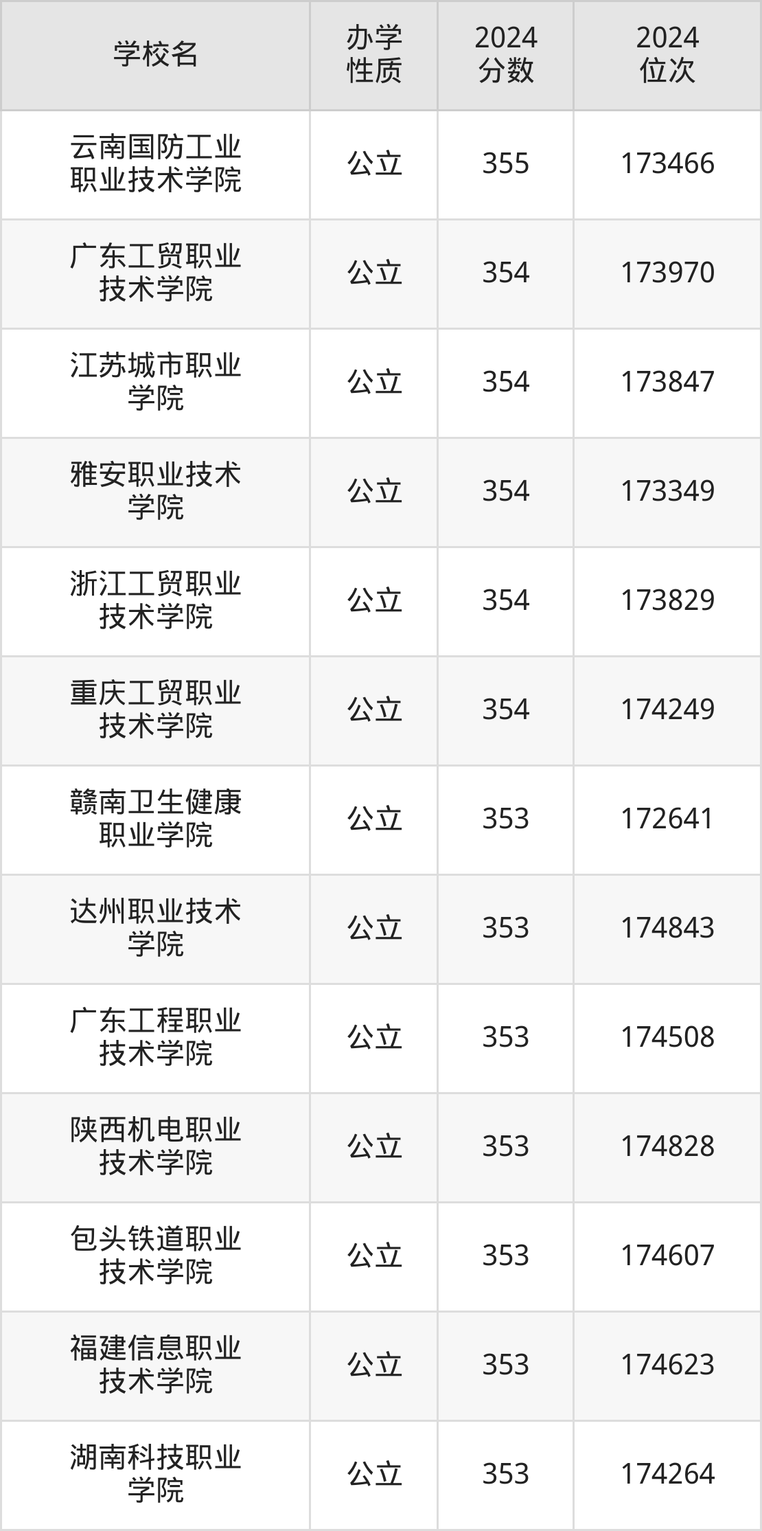 | 洛阳职业技术 学院 | 355 | 172990 |