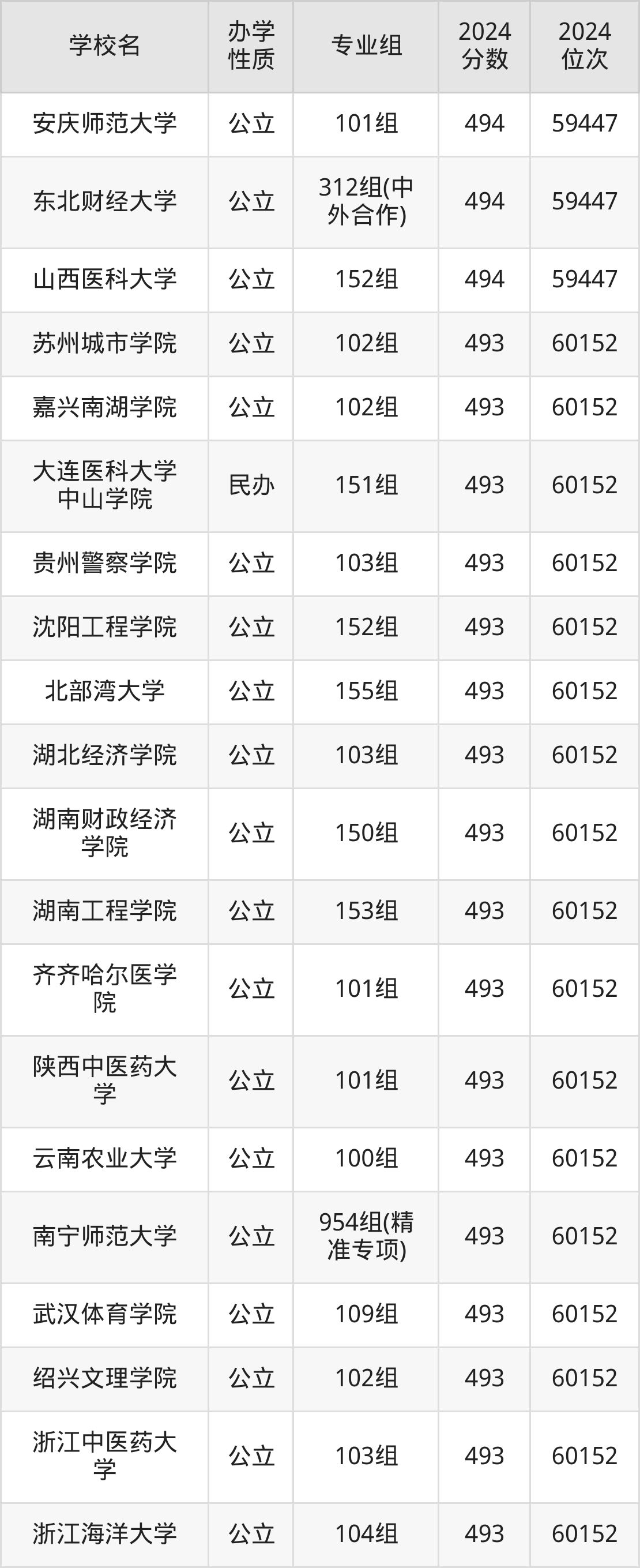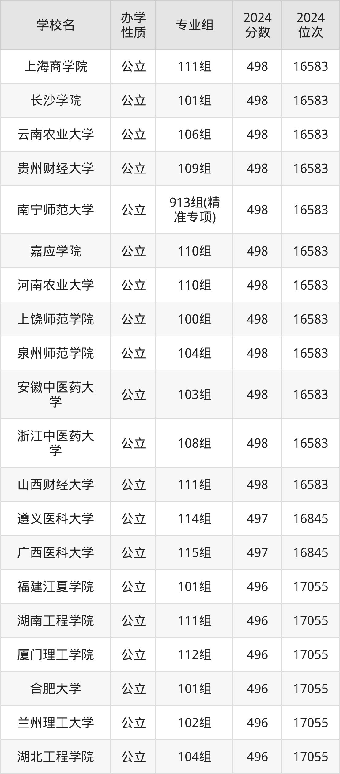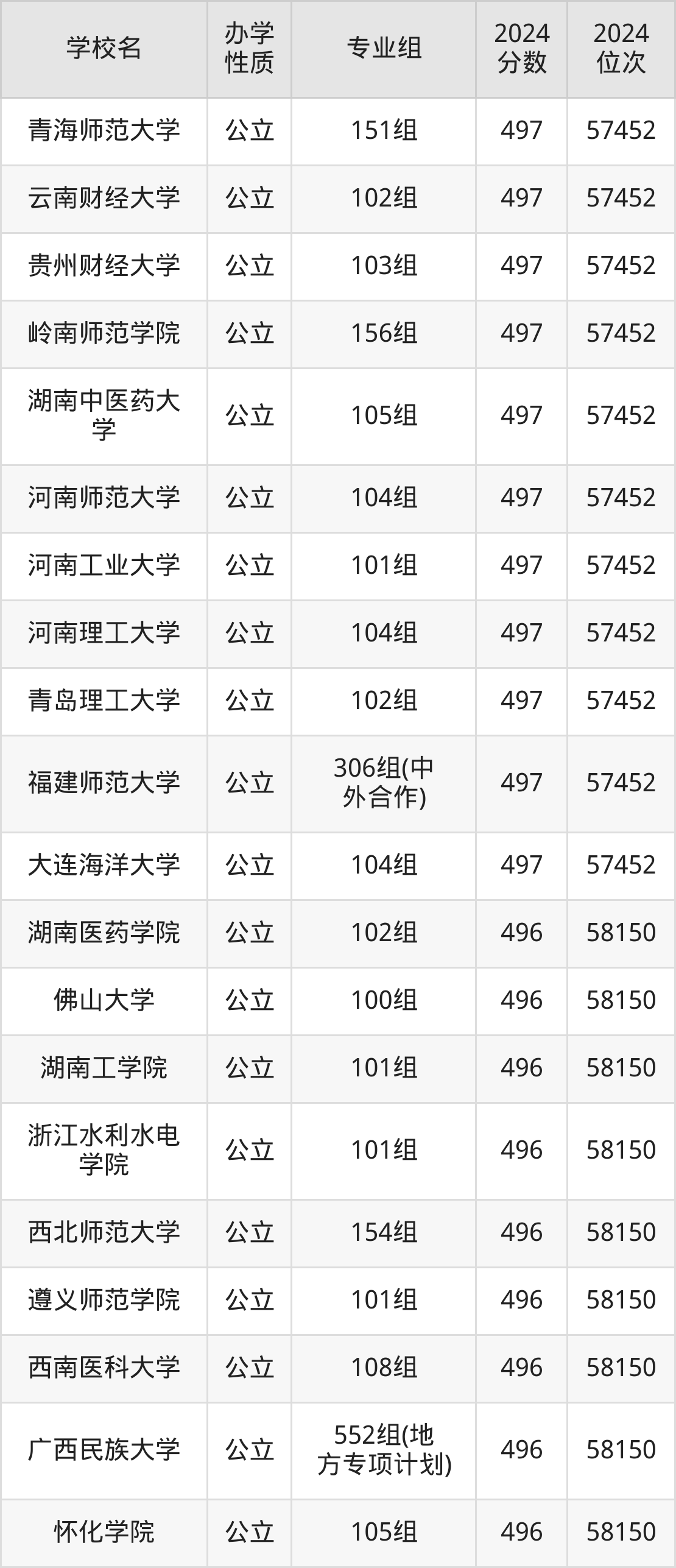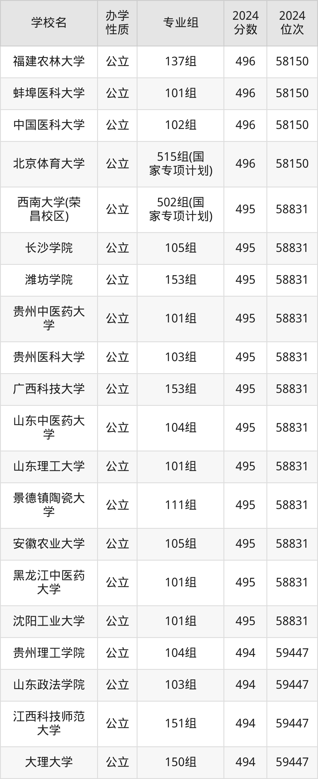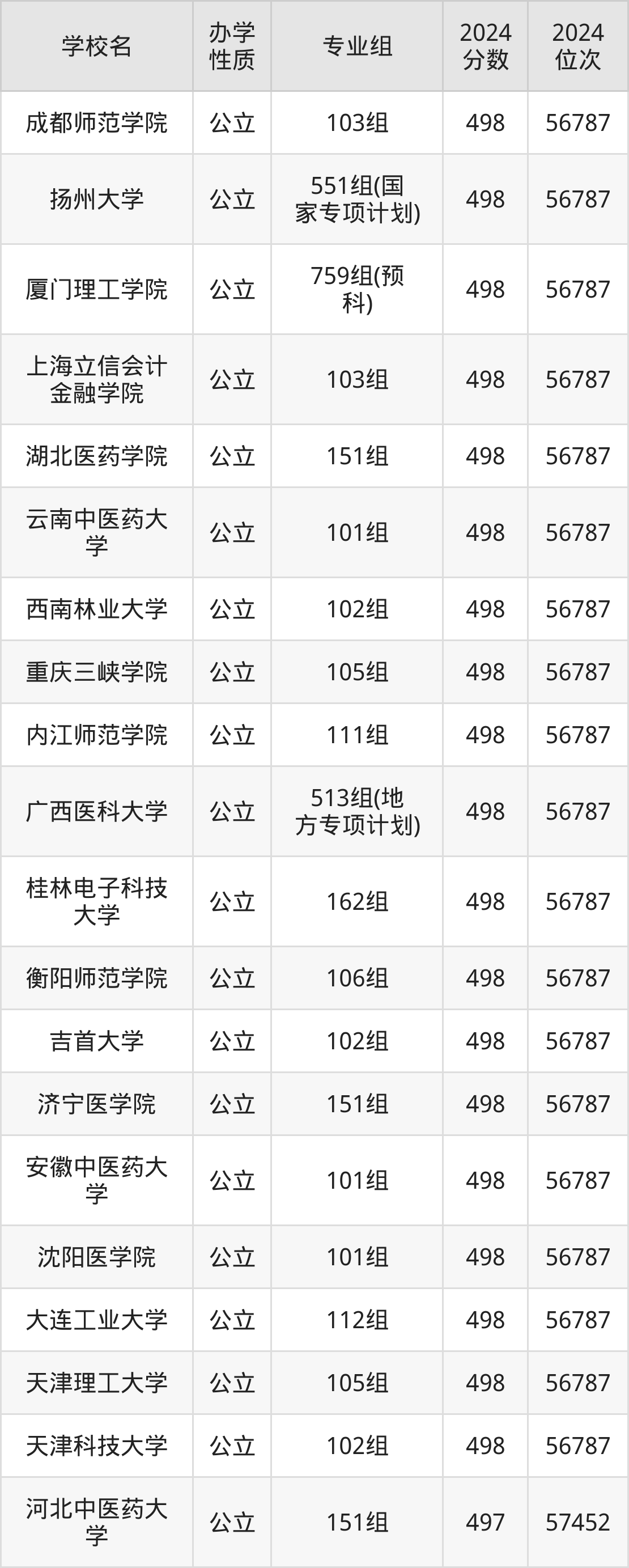 | 广西医科大学 | 513组(地 方专项计划) | 498 | 56787 |