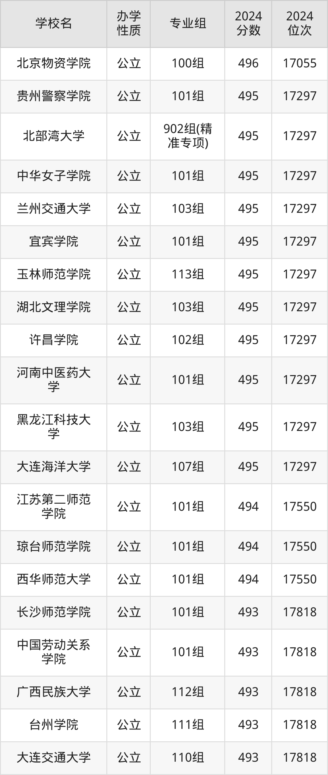 | 北部湾大学 | 902组(精 准专项) | 495 | 17297 |