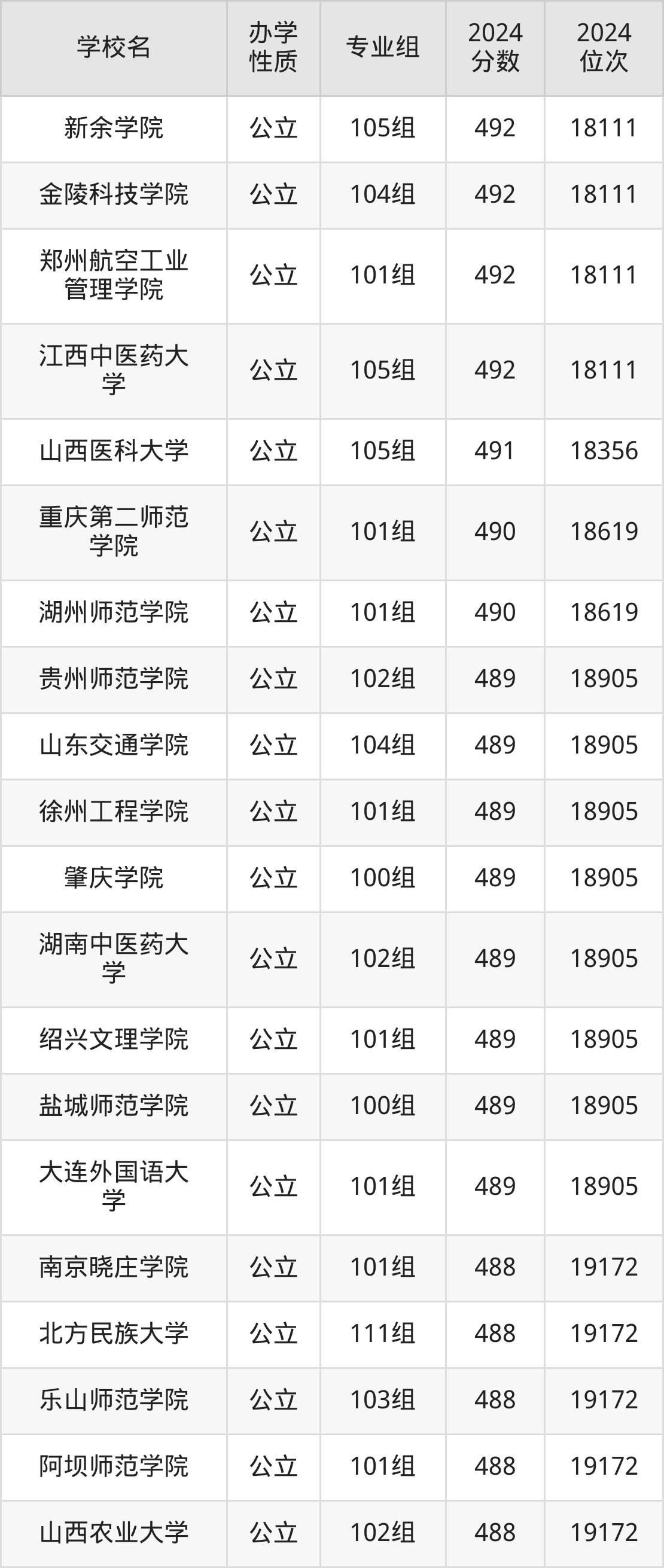 | 山西医科大学 | 112组 | 488 | 19172 |