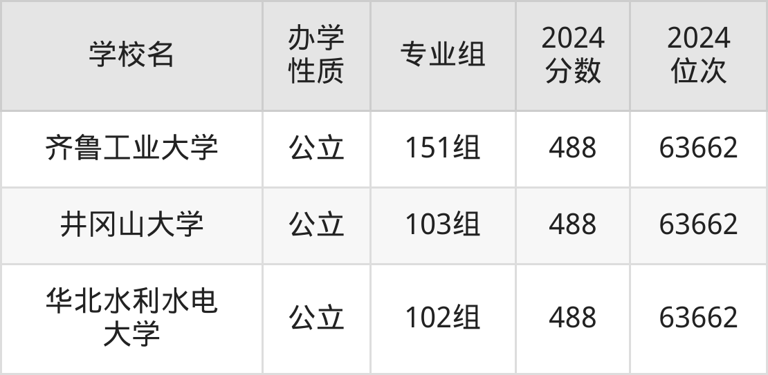 | 齐鲁工业大学 | 151组 | 488 | 63662 |