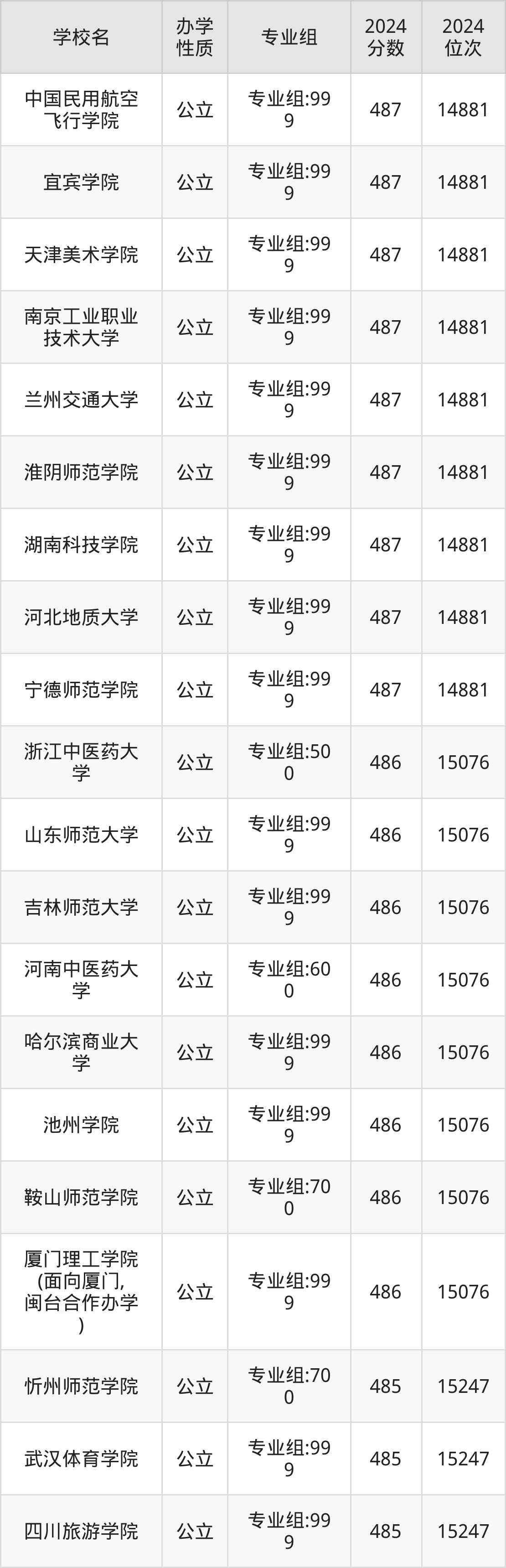 | 中国民用航空 飞行学院 | 专业组:99 9 | 487 | 14881 |
