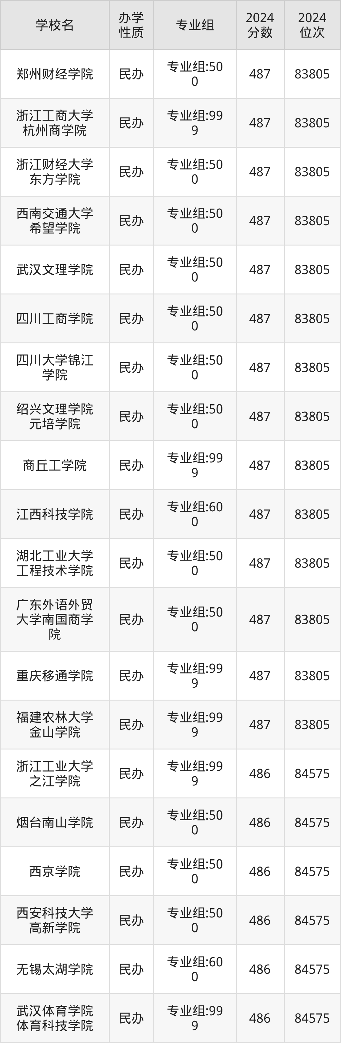 | 郑州财经学院 | 专业组:50 0 | 487 | 83805 |