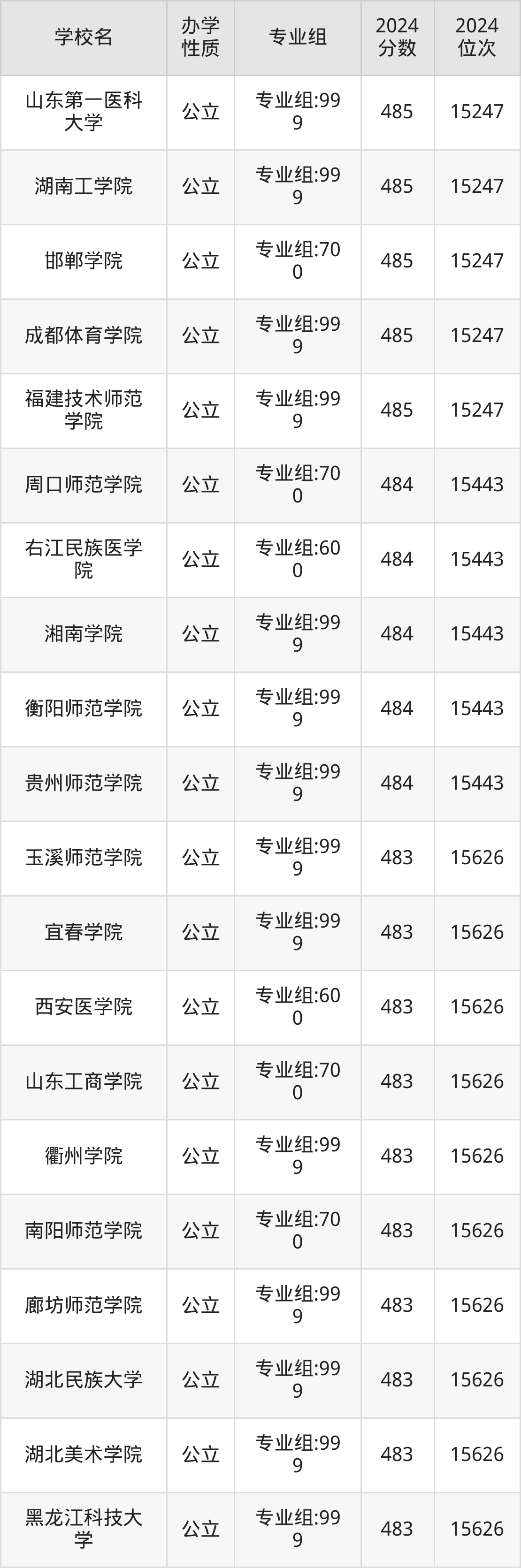 | 山东第一医科 大学 | 专业组:99 9 | 485 | 15247 |