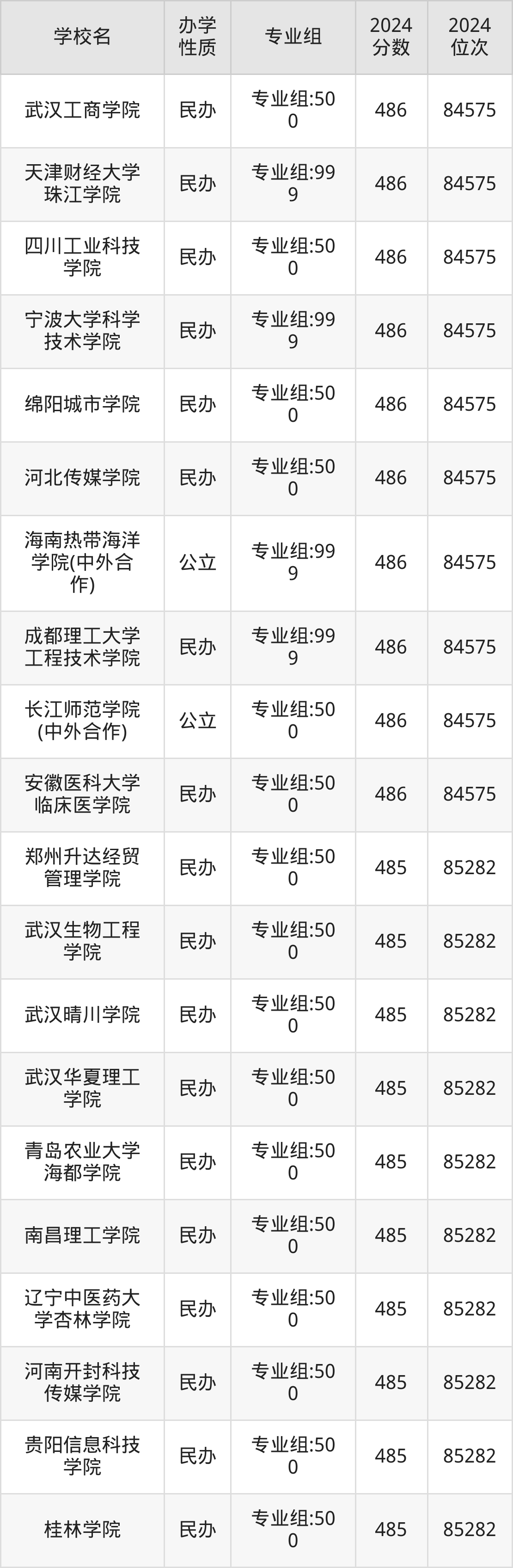 | 浙江中医药大 学 | 专业组:50 0 | 486 | 15076 |