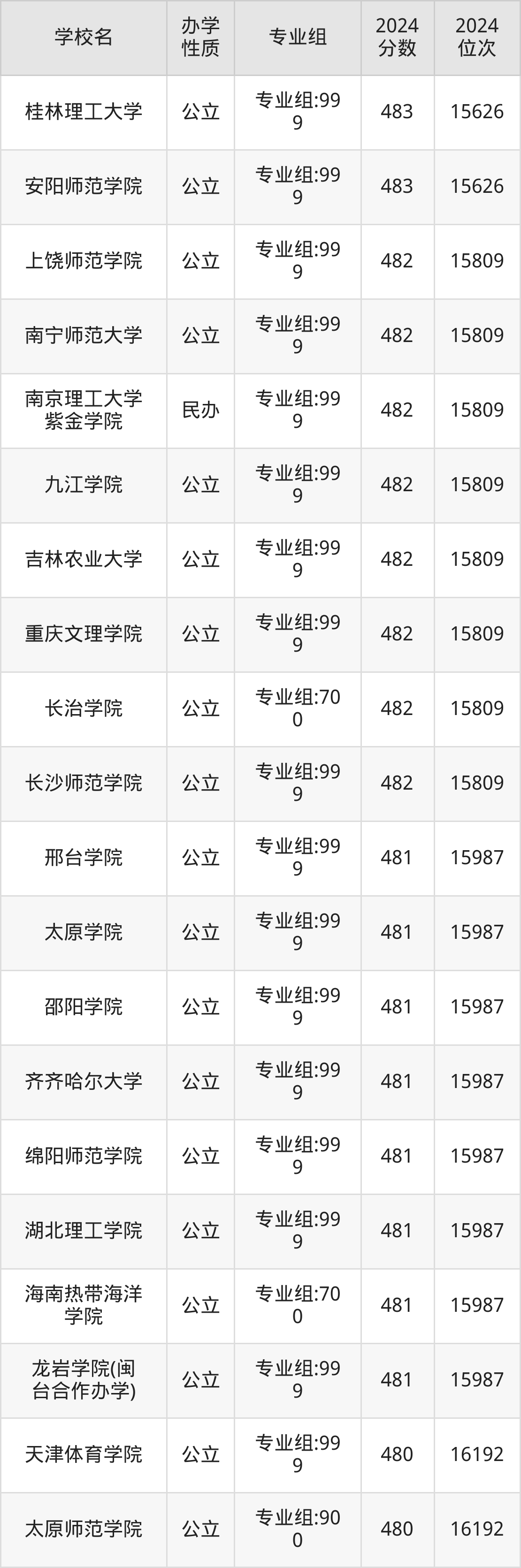 | 天津体育学院 | 专业组:99 9 | 480 | 16192 |
