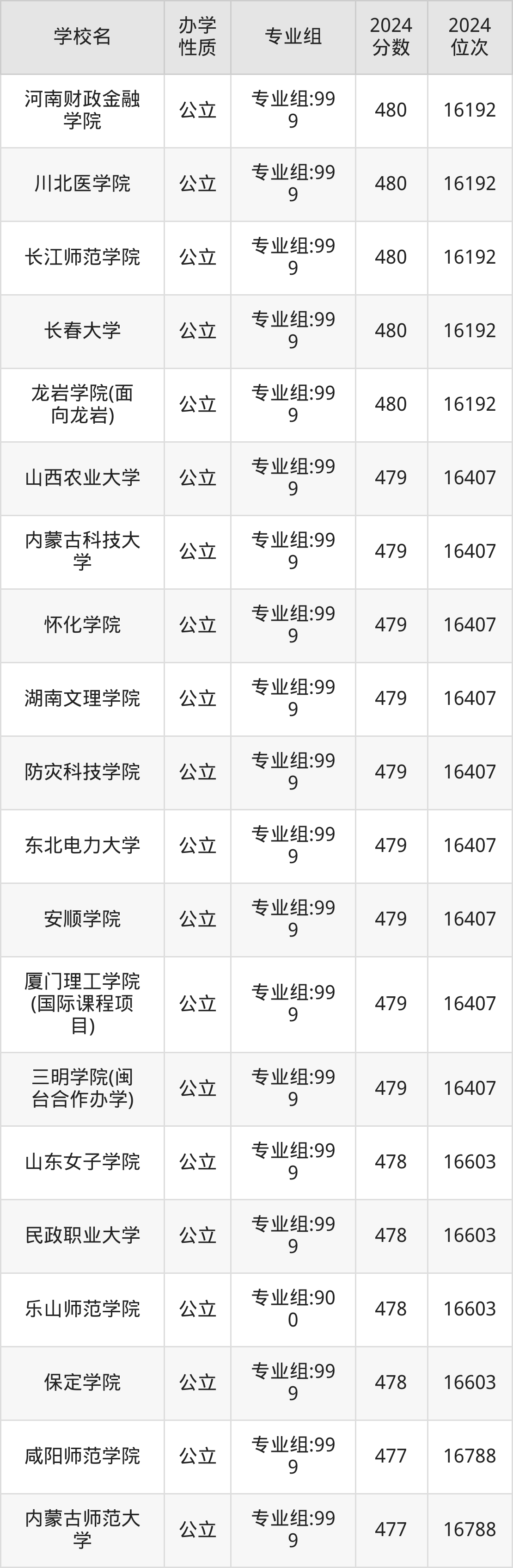 | 东北电力大学 | 专业组:99 9 | 479 | 16407 |