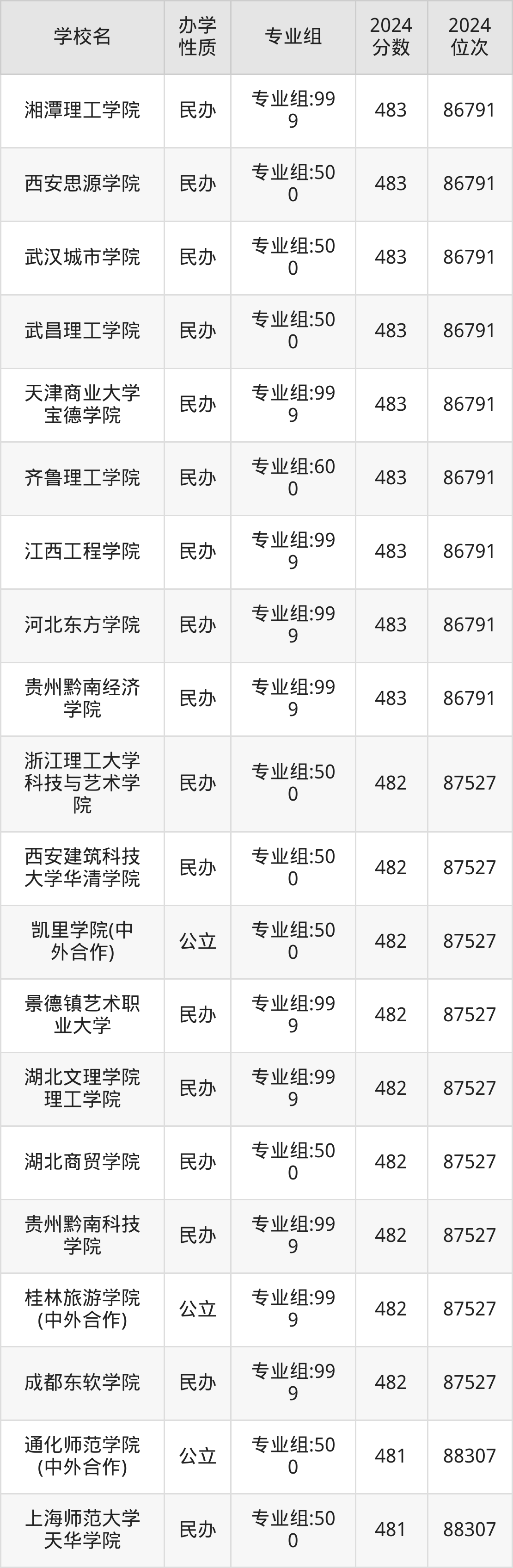 | 成都东软学院 | 专业组:99 9 | 482 | 87527 |