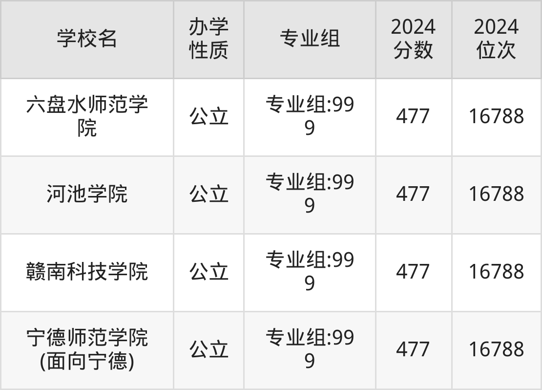 | 六盘水师范学 院 | 专业组:99 9 | 477 | 16788 |