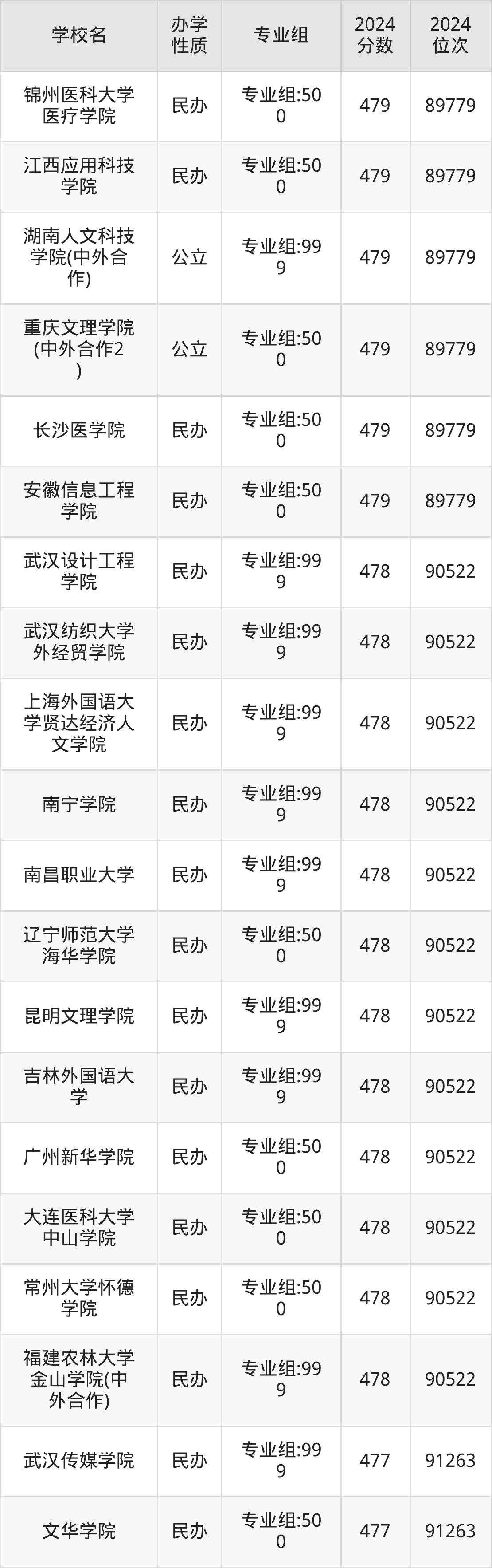 | 锦州医科大学 医疗学院 | 专业组:50 0 | 479 | 89779 |