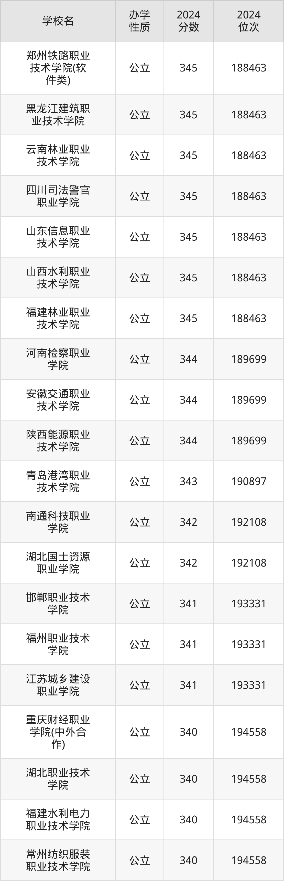 | 福建水利电力 职业技术学院 | 340 | 194558 |