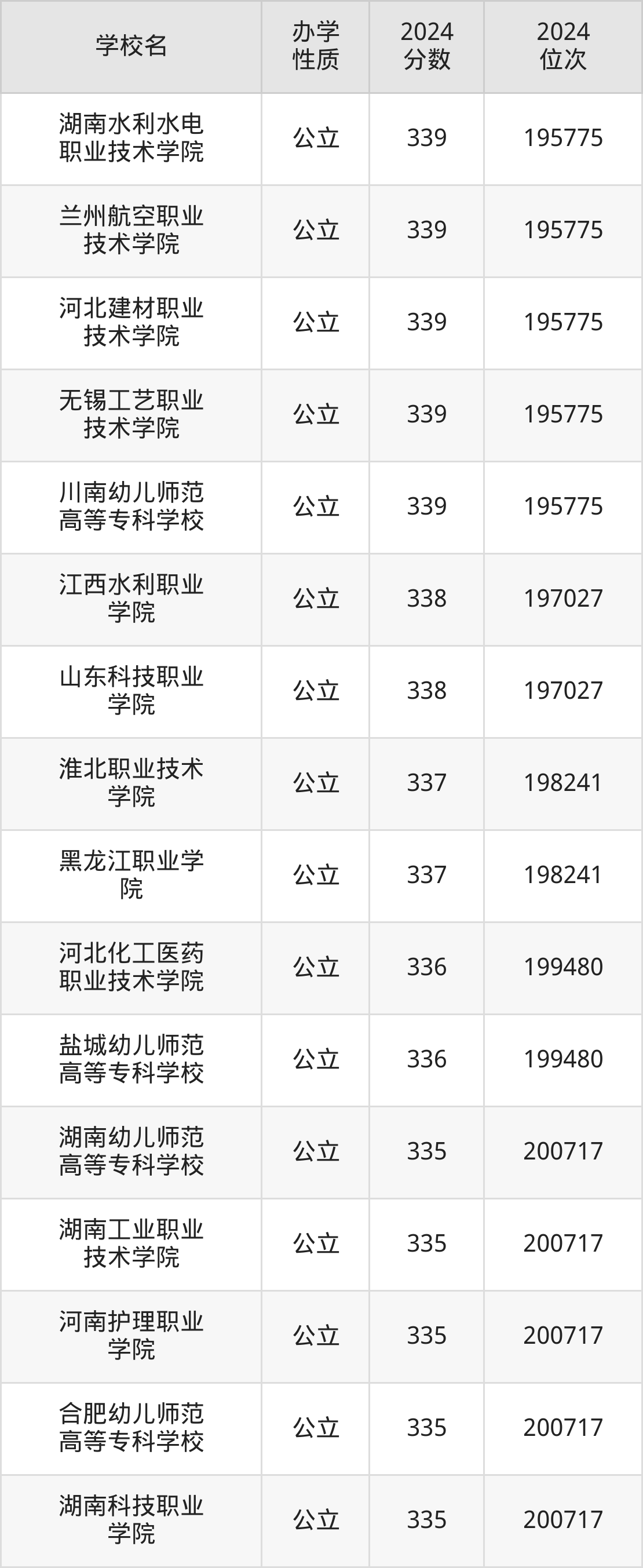 | 湖南水利水电 职业技术学院 | 339 | 195775 |