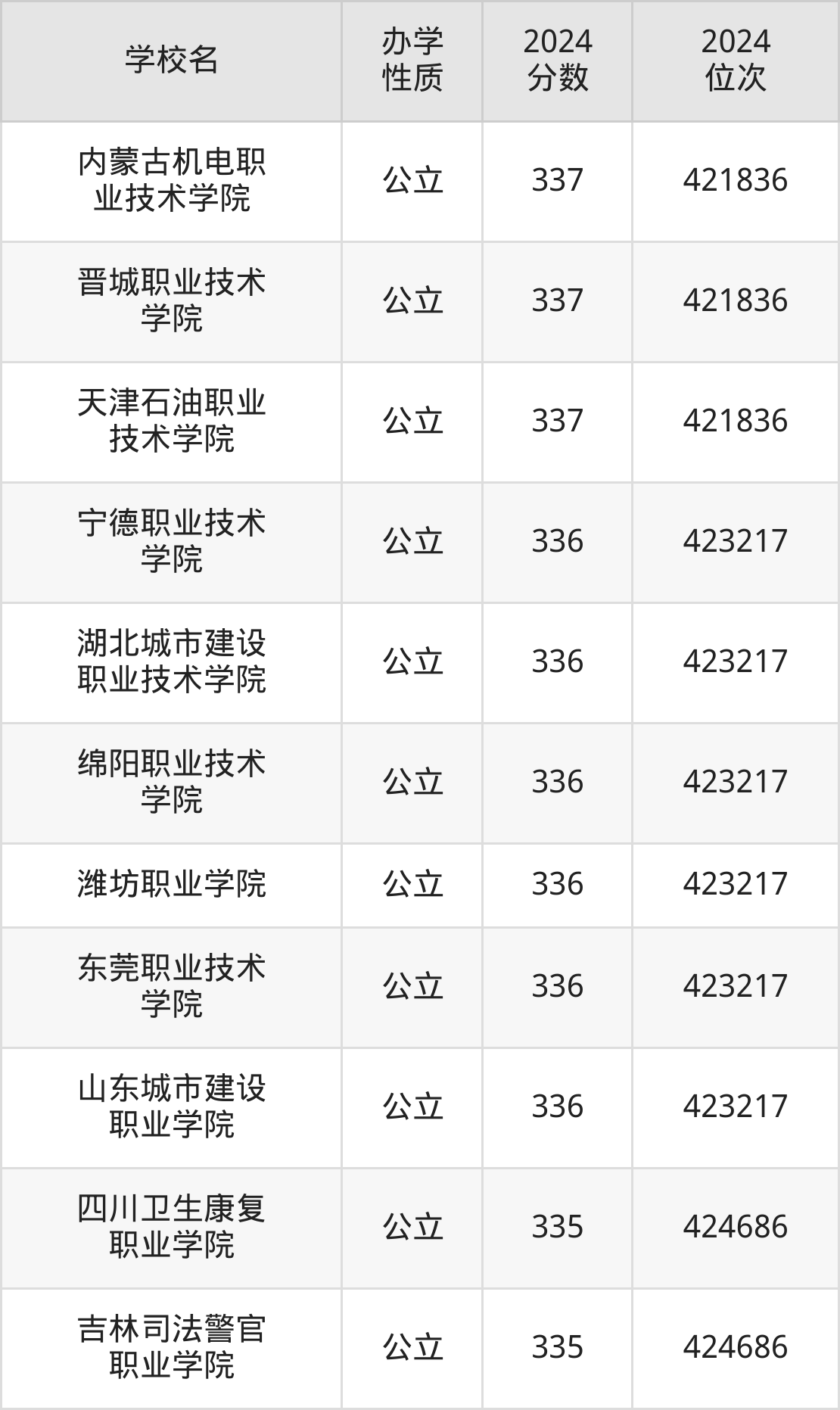 | 山东城市建设 职业学院 | 336 | 423217 |