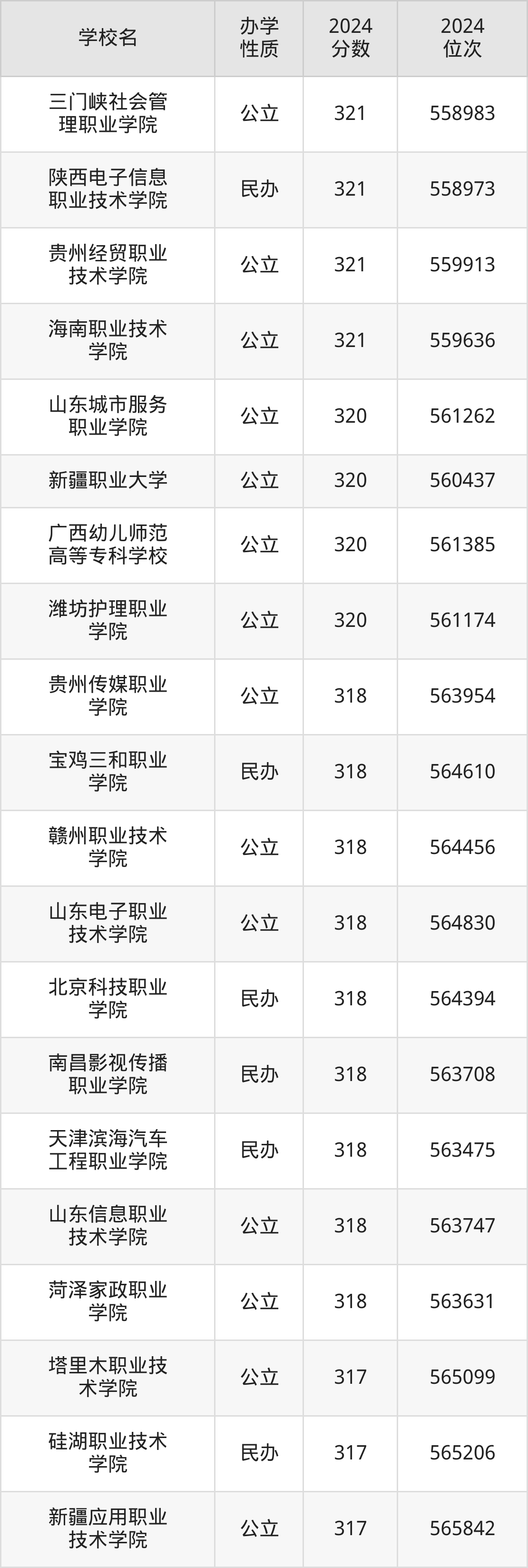 | 贵州传媒职业 学院 | 318 | 563954 |