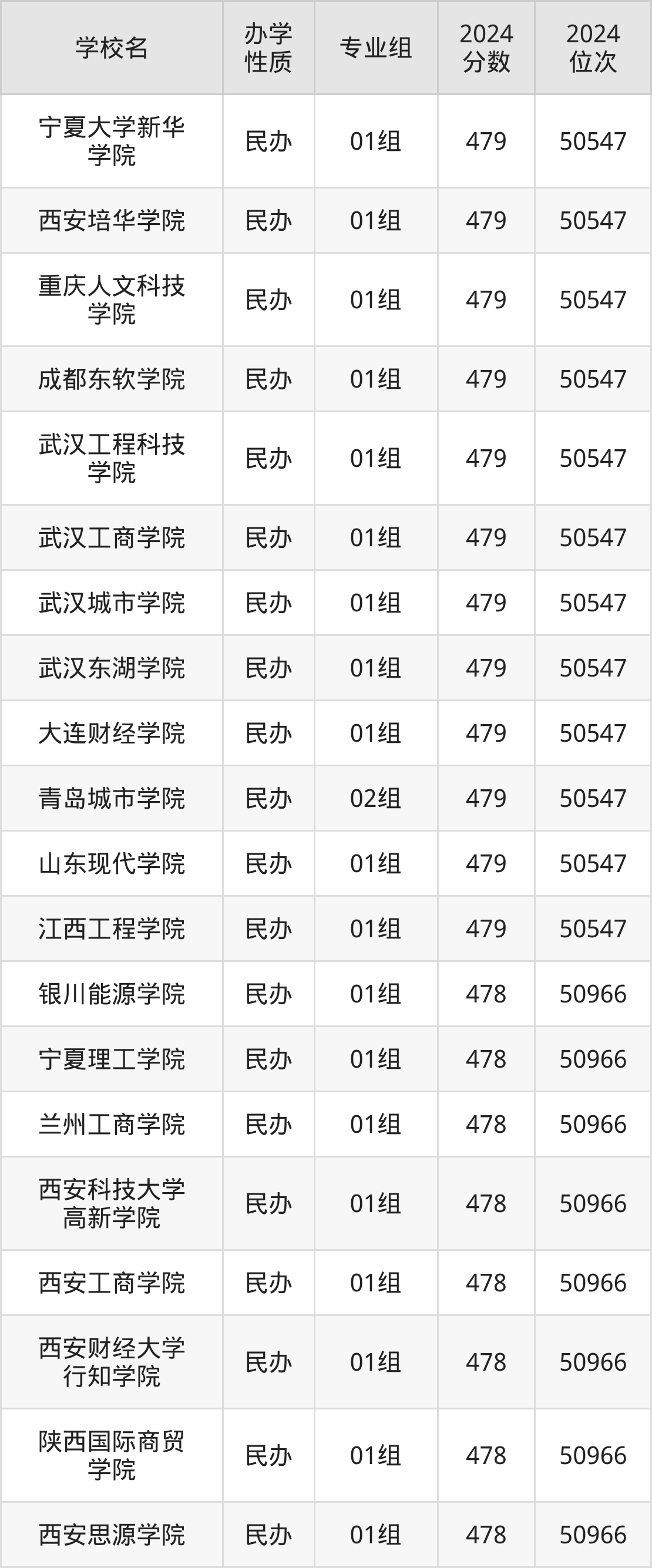 | 西安培华学院 | 01组 | 479 | 50547 |