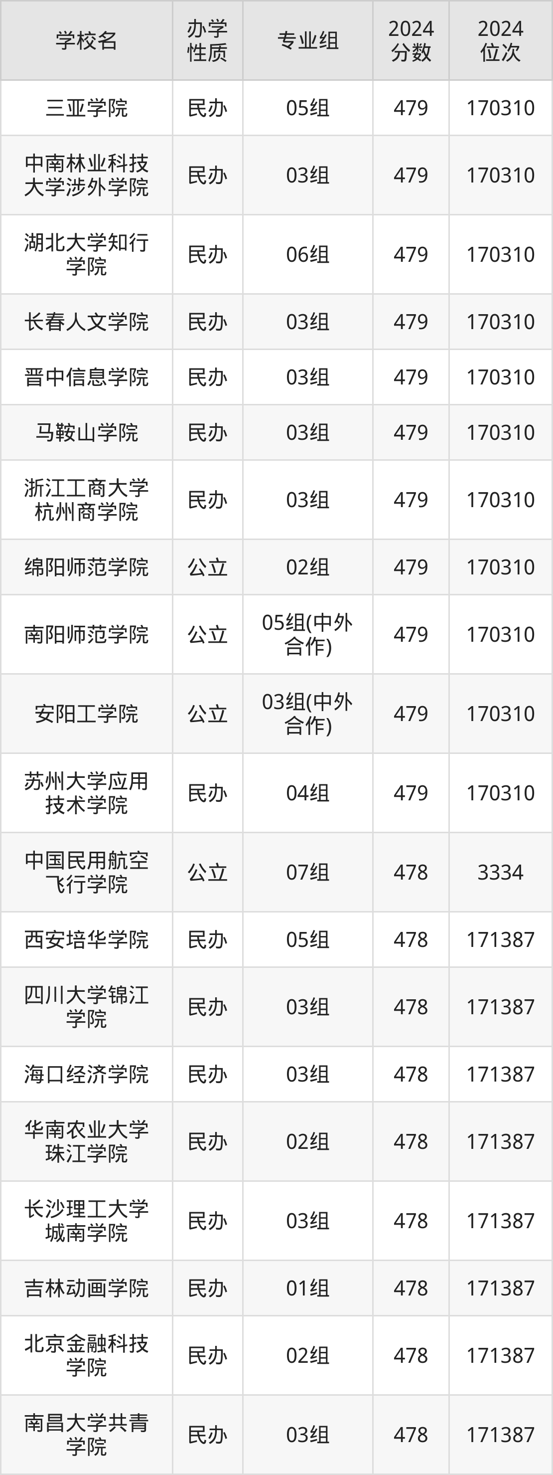| 安阳工学院 | 01组(中外 合作) | 479 | 170310 |