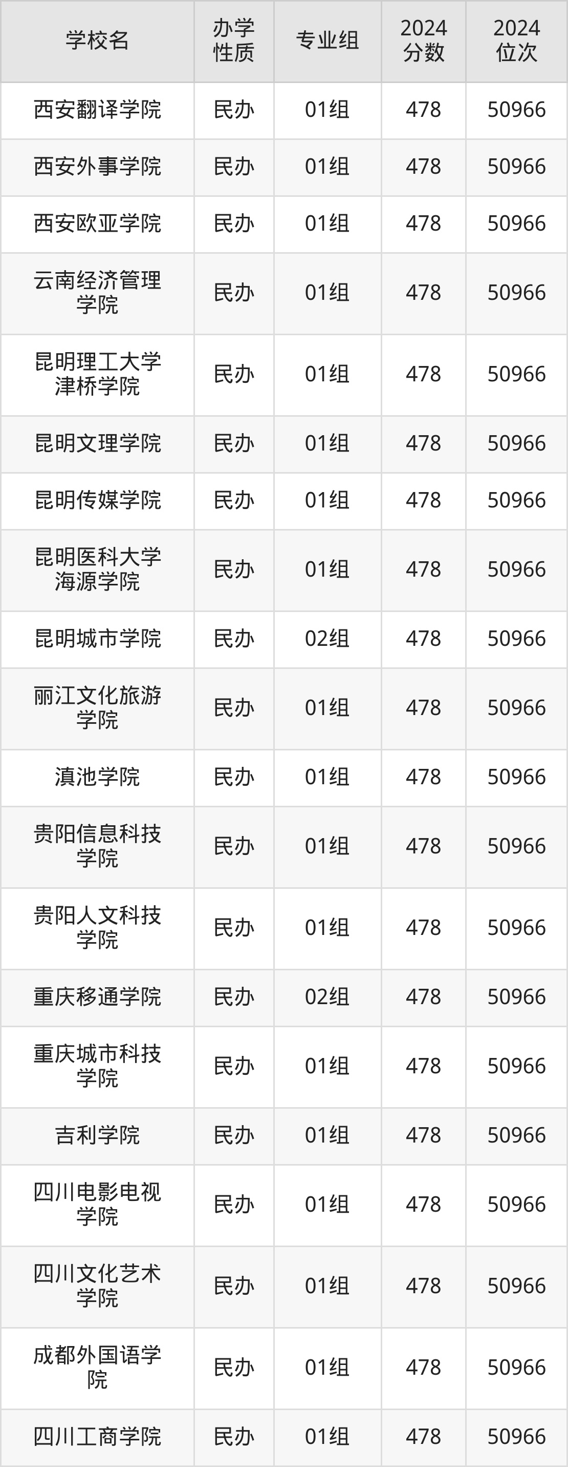| 西安思源学院 | 01组 | 478 | 50966 |