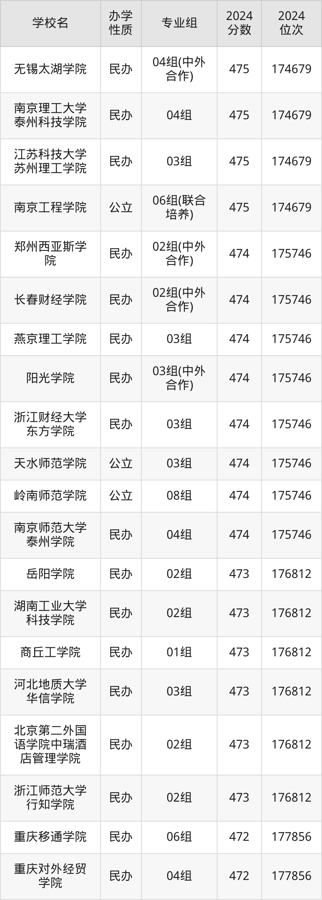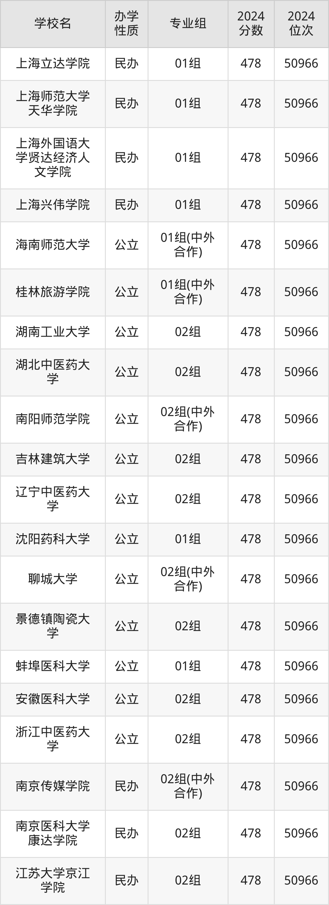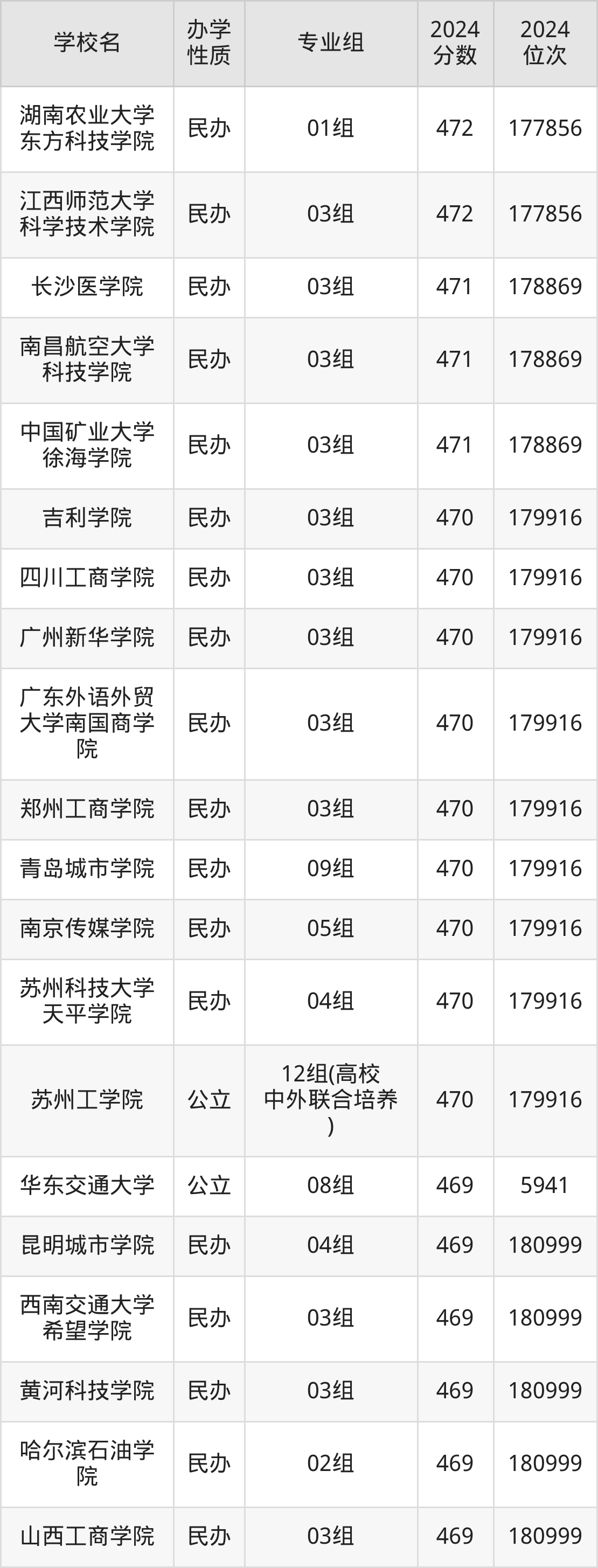 | 学校名 | 专业组 | 2024 分数 | 2024 位次 |