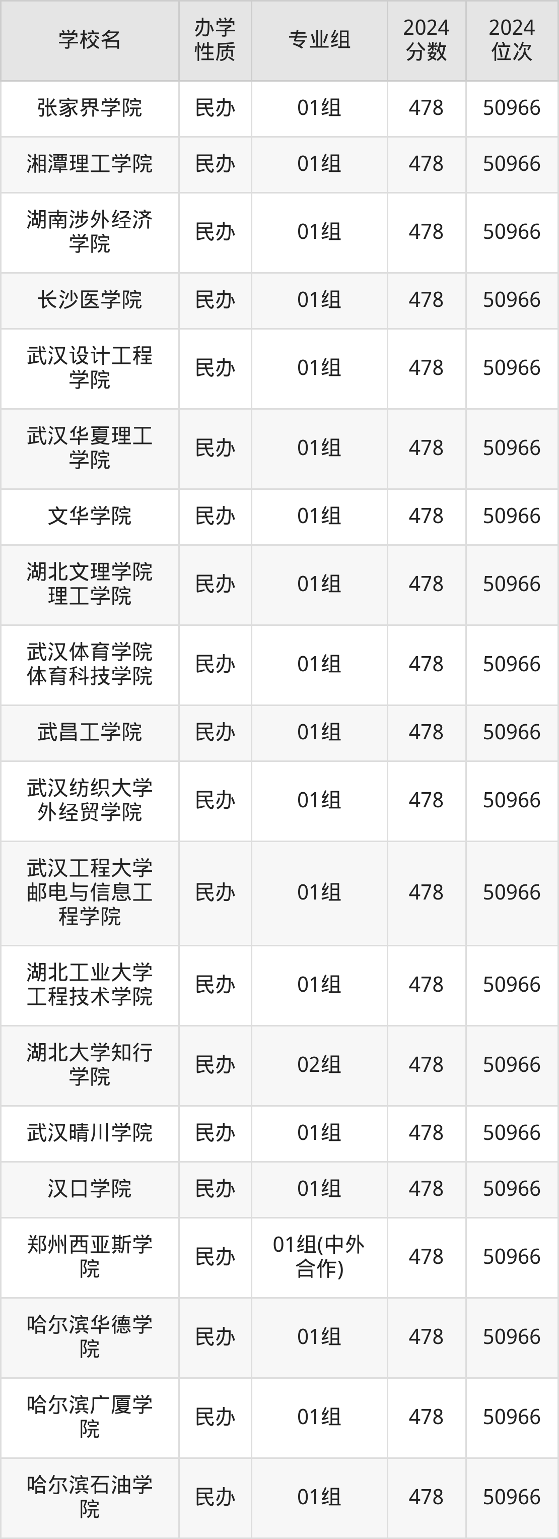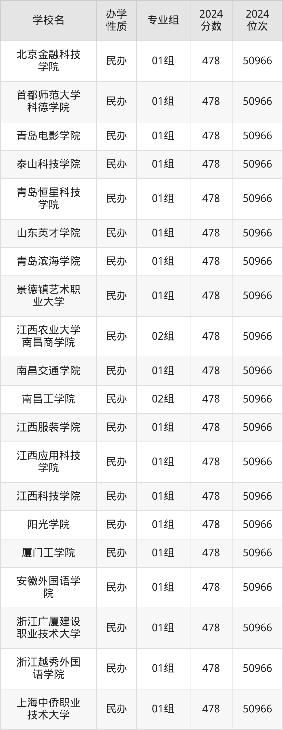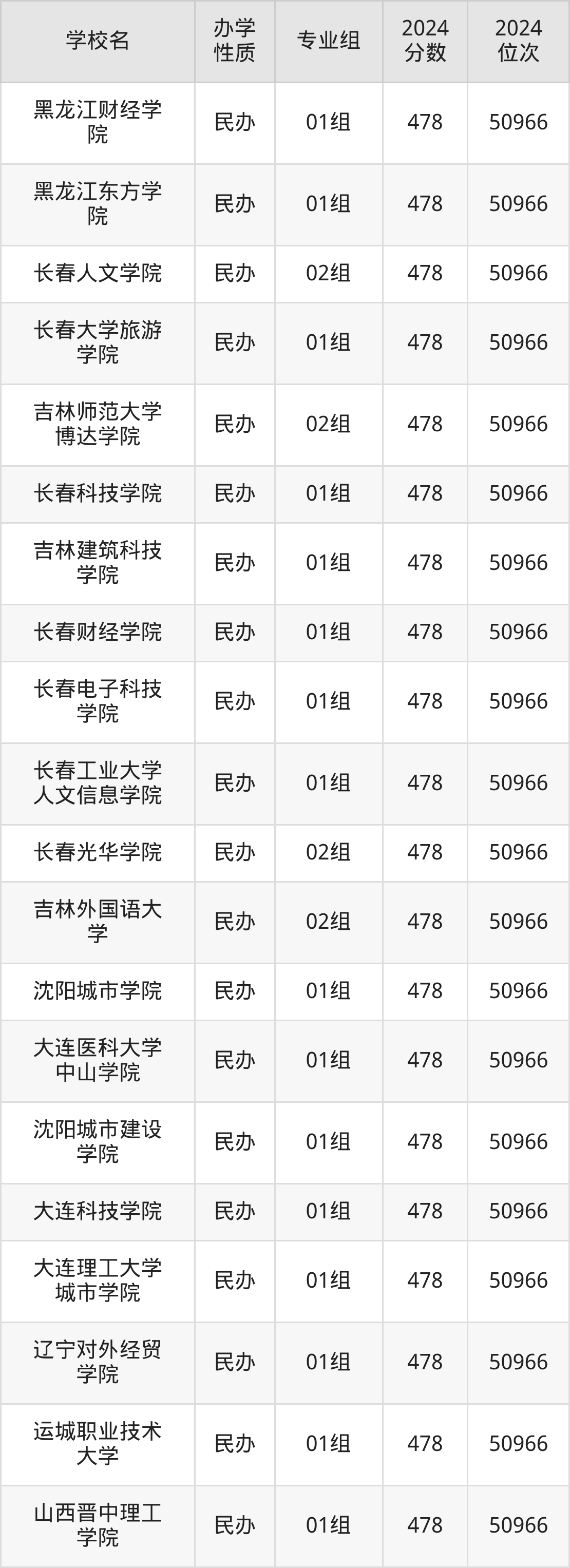 | 长春人文学院 | 01组 | 478 | 50966 |