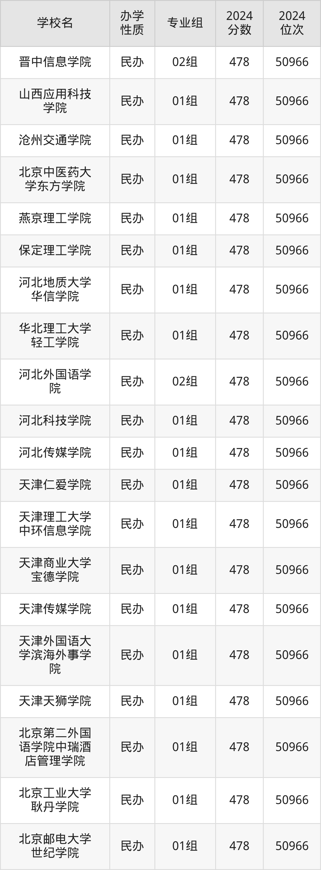 | 哈尔滨广厦学 院 | 01组 | 478 | 50966 |