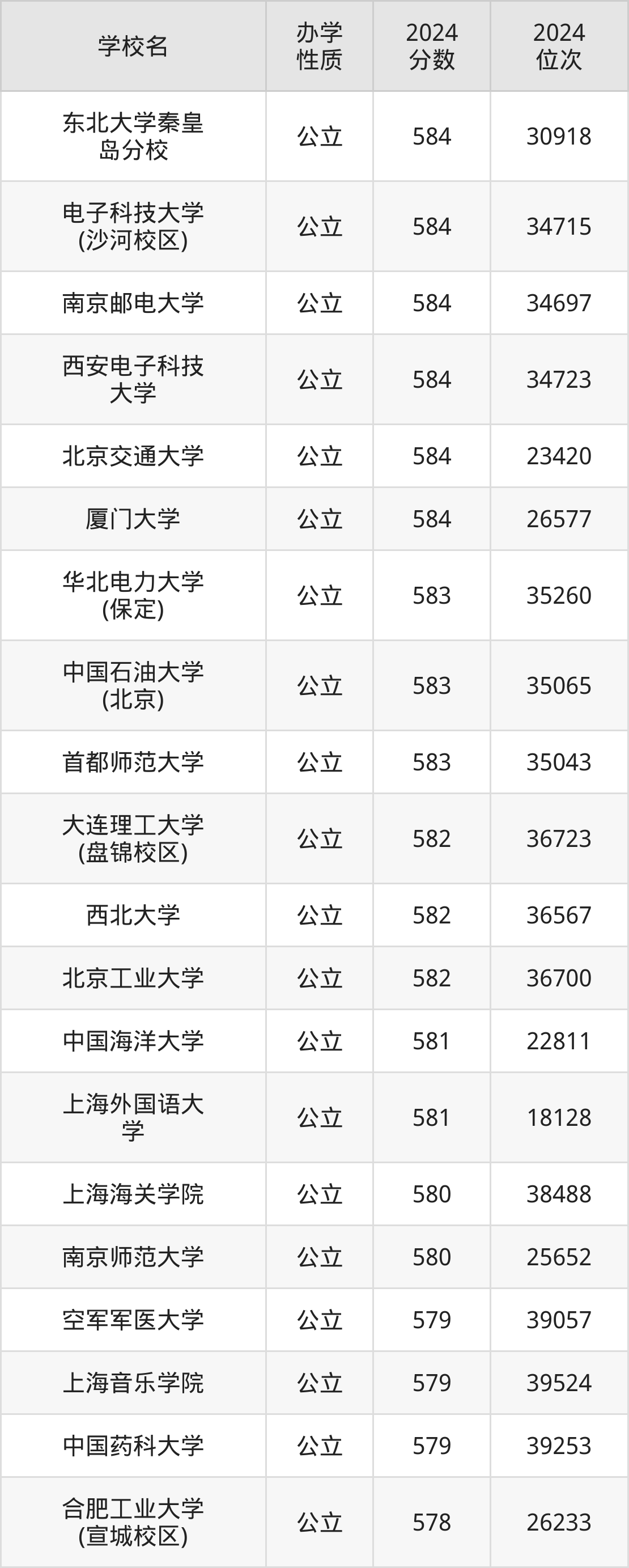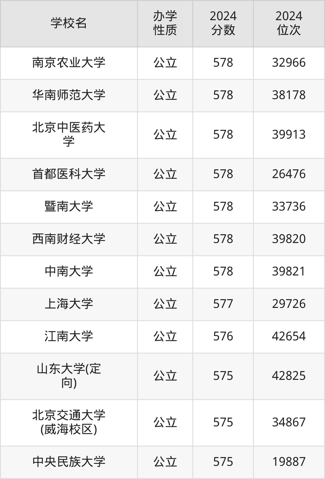 根据2024年山东的录取数据来看,580分的考生可以上中央民族大学、中南大学、中国海洋大学等985大学,本文就整理出山东580分能上的985大学名单。
