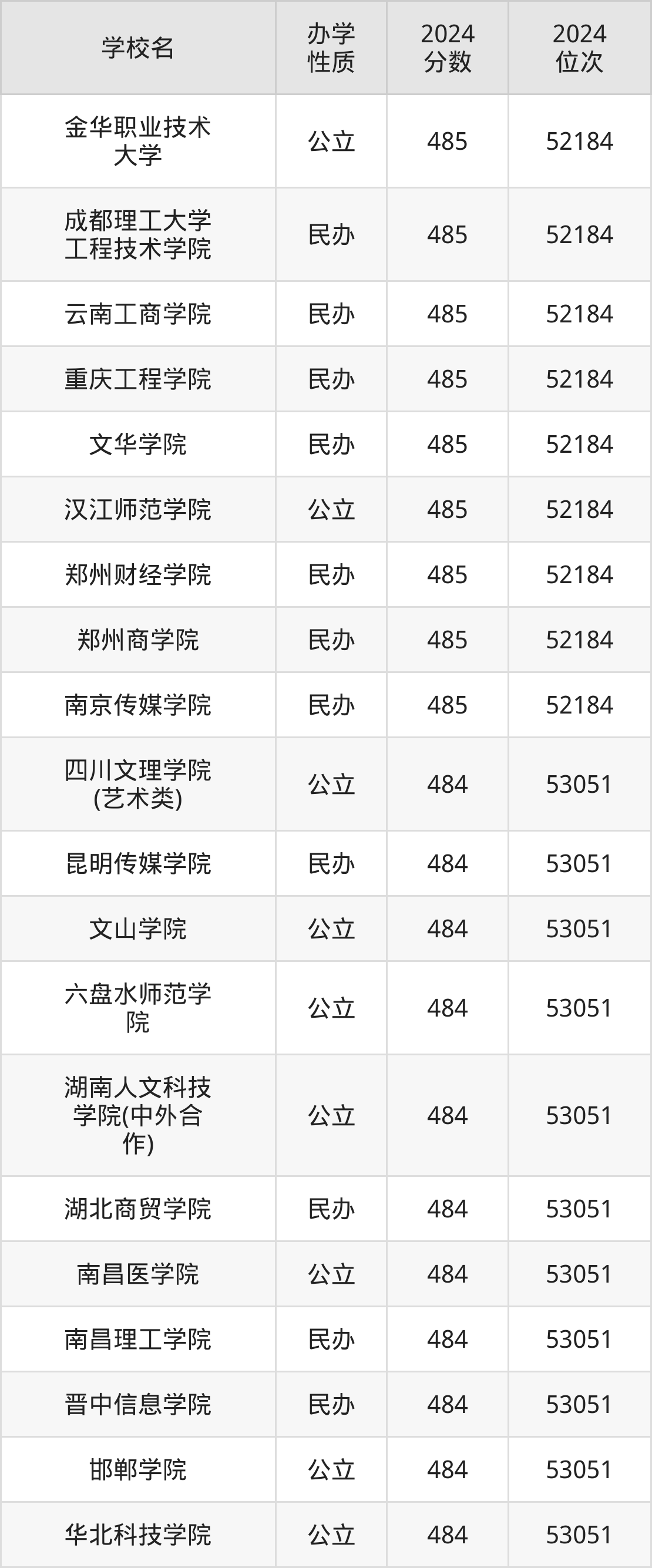 | 南京传媒学院 | 485 | 52184 |