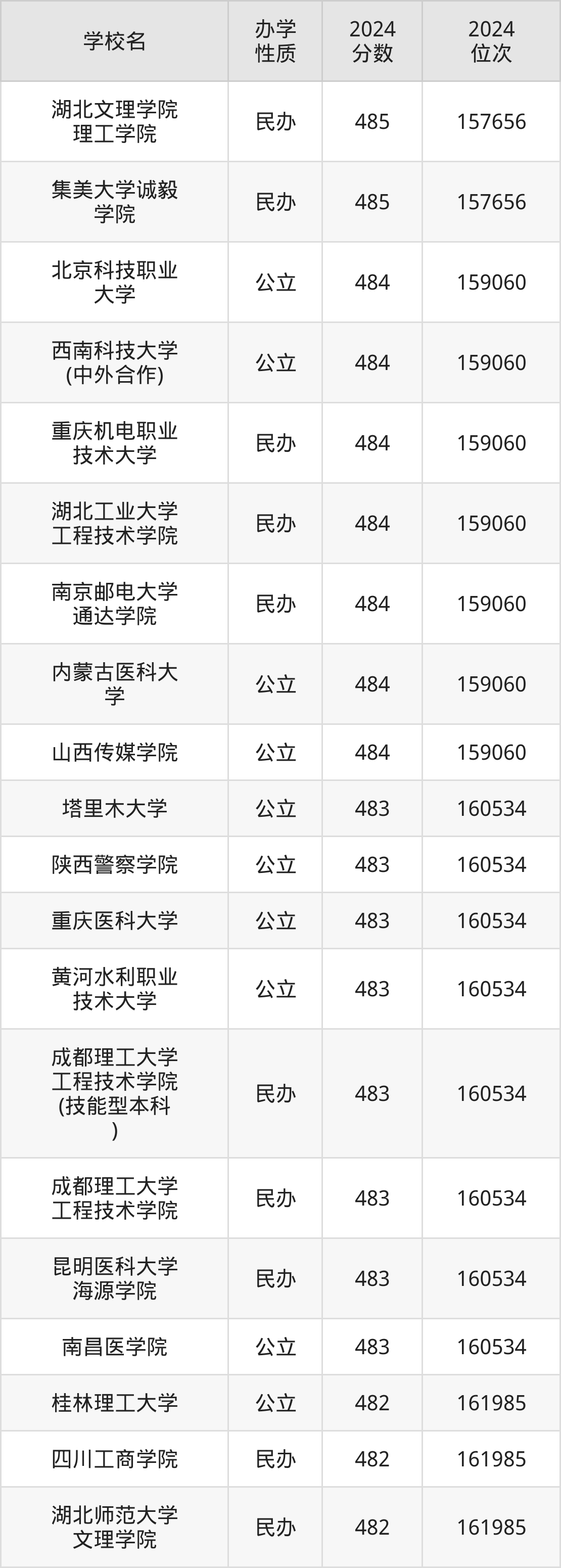 | 南昌理工学院 | 480 | 164858 |