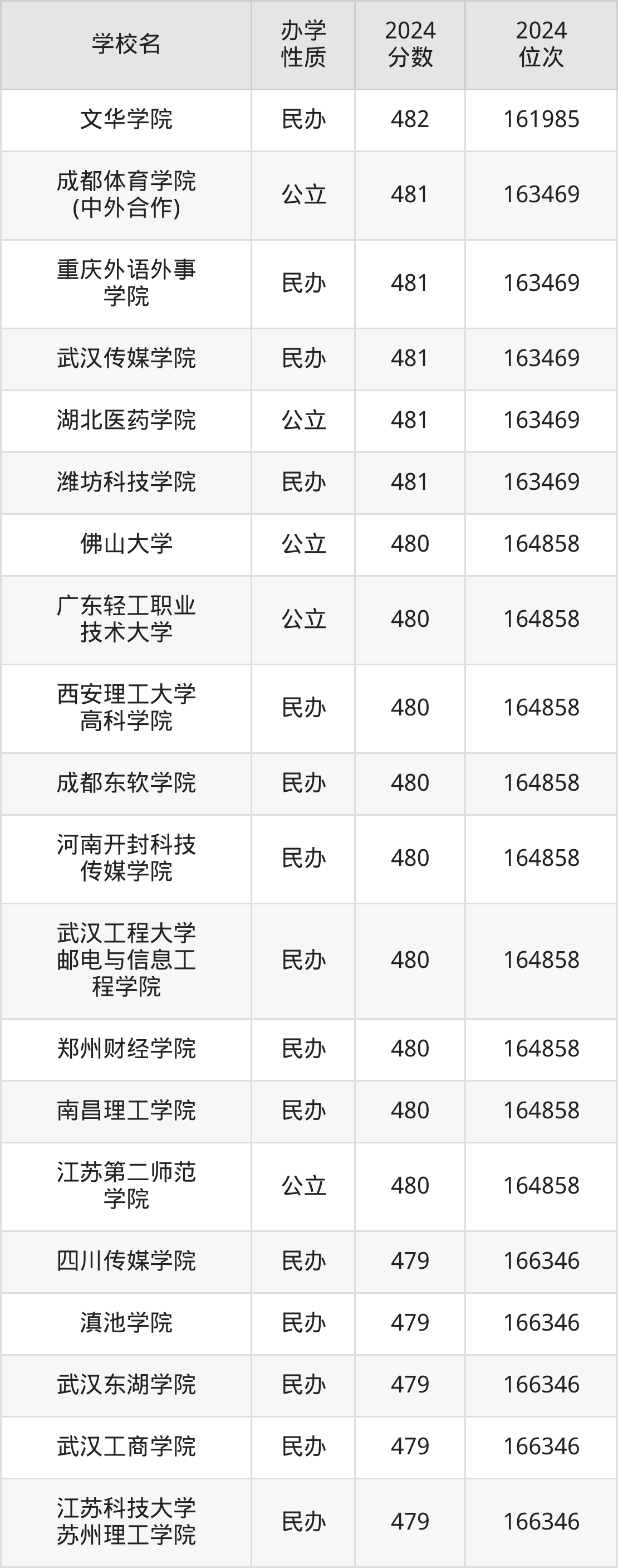 | 成都东软学院 | 480 | 164858 |