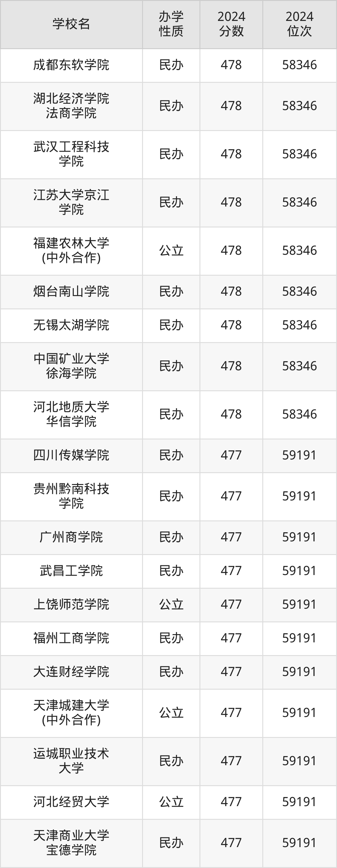 | 成都东软学院 | 478 | 58346 |