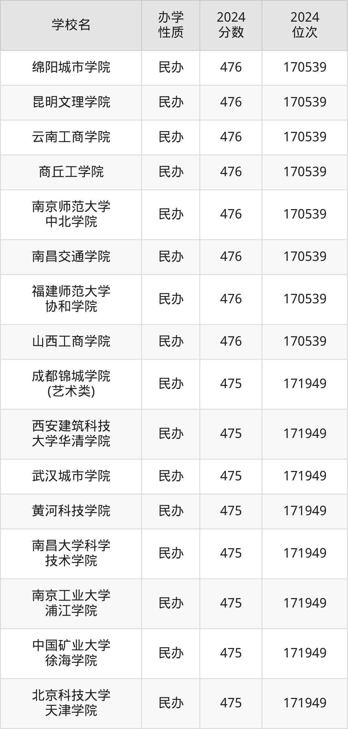 | 成都锦城学院 (艺术类) | 475 | 171949 |